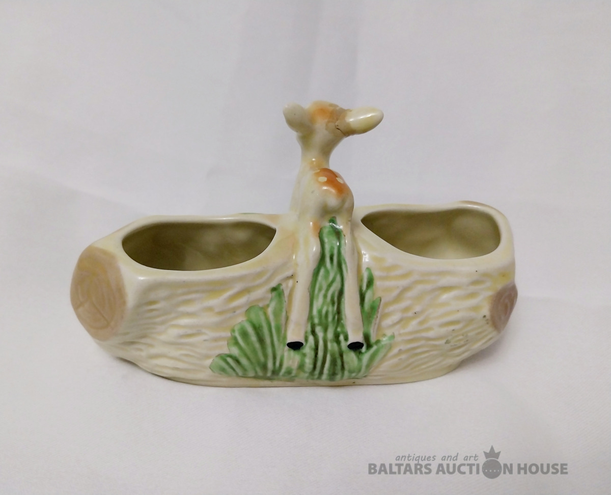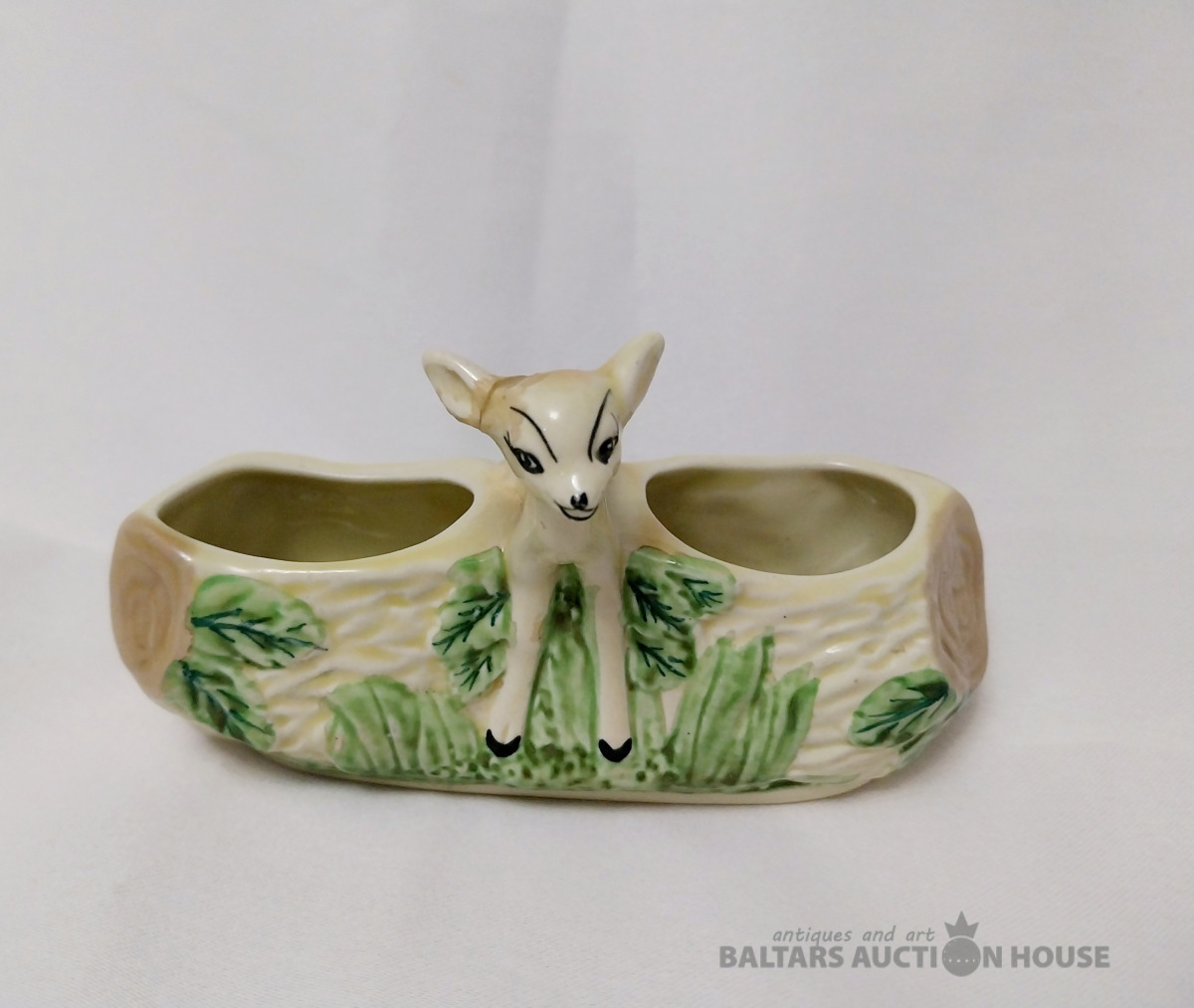Porcelāna dekoratīva vazīte ar stirnu. H 7 cm × 12 cm.