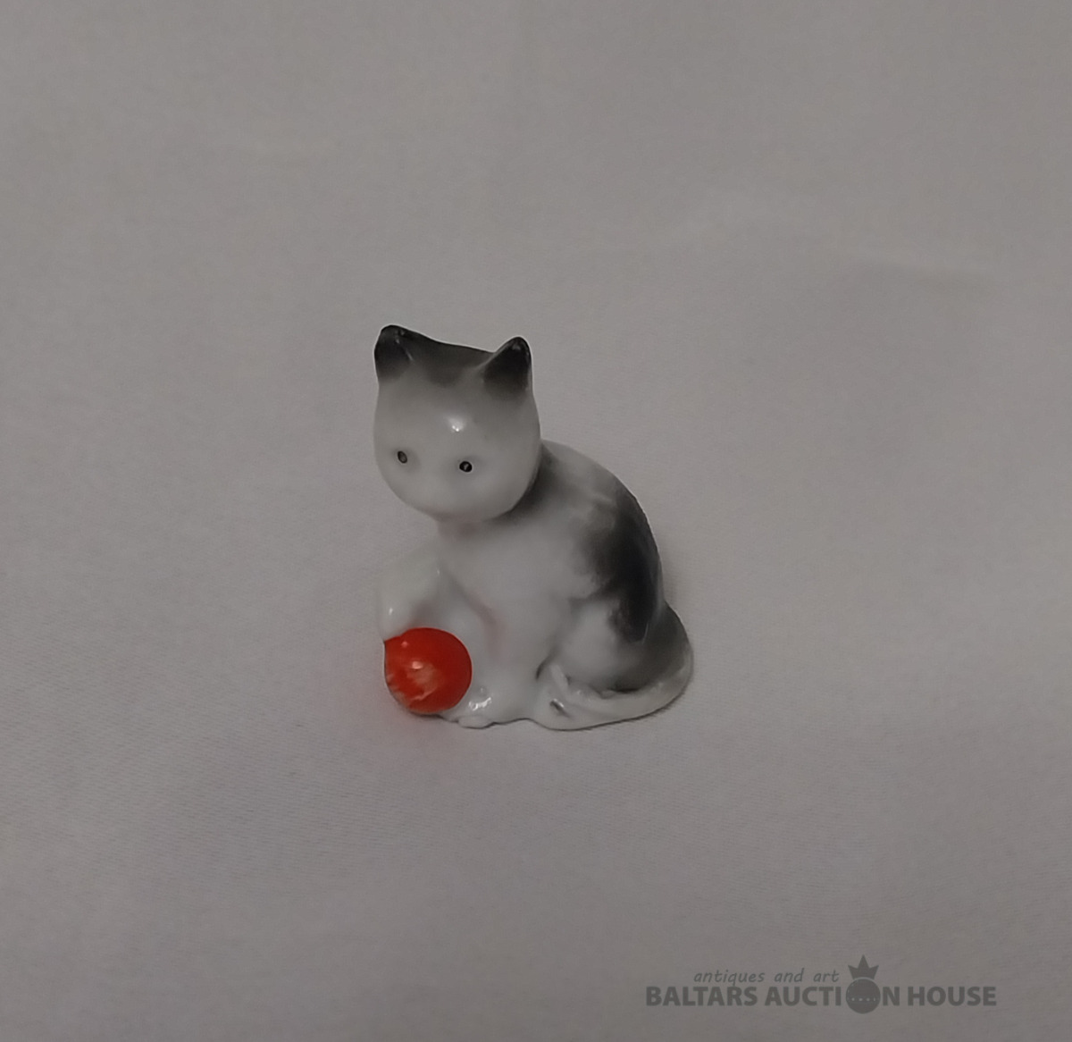 Miniatūra kaķa porcelāna figūra H 3.5 cm Grupas bildej informatīvā nozīme.