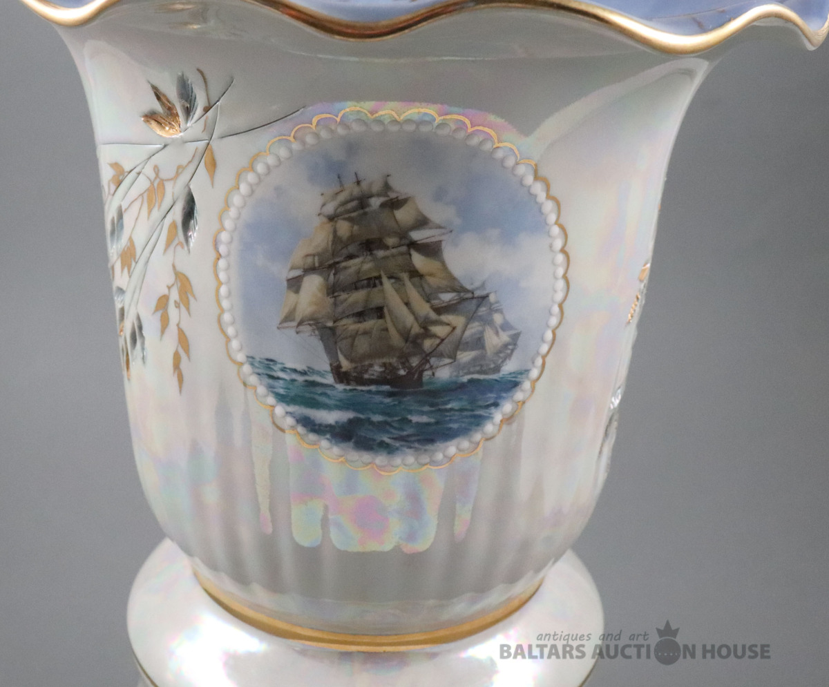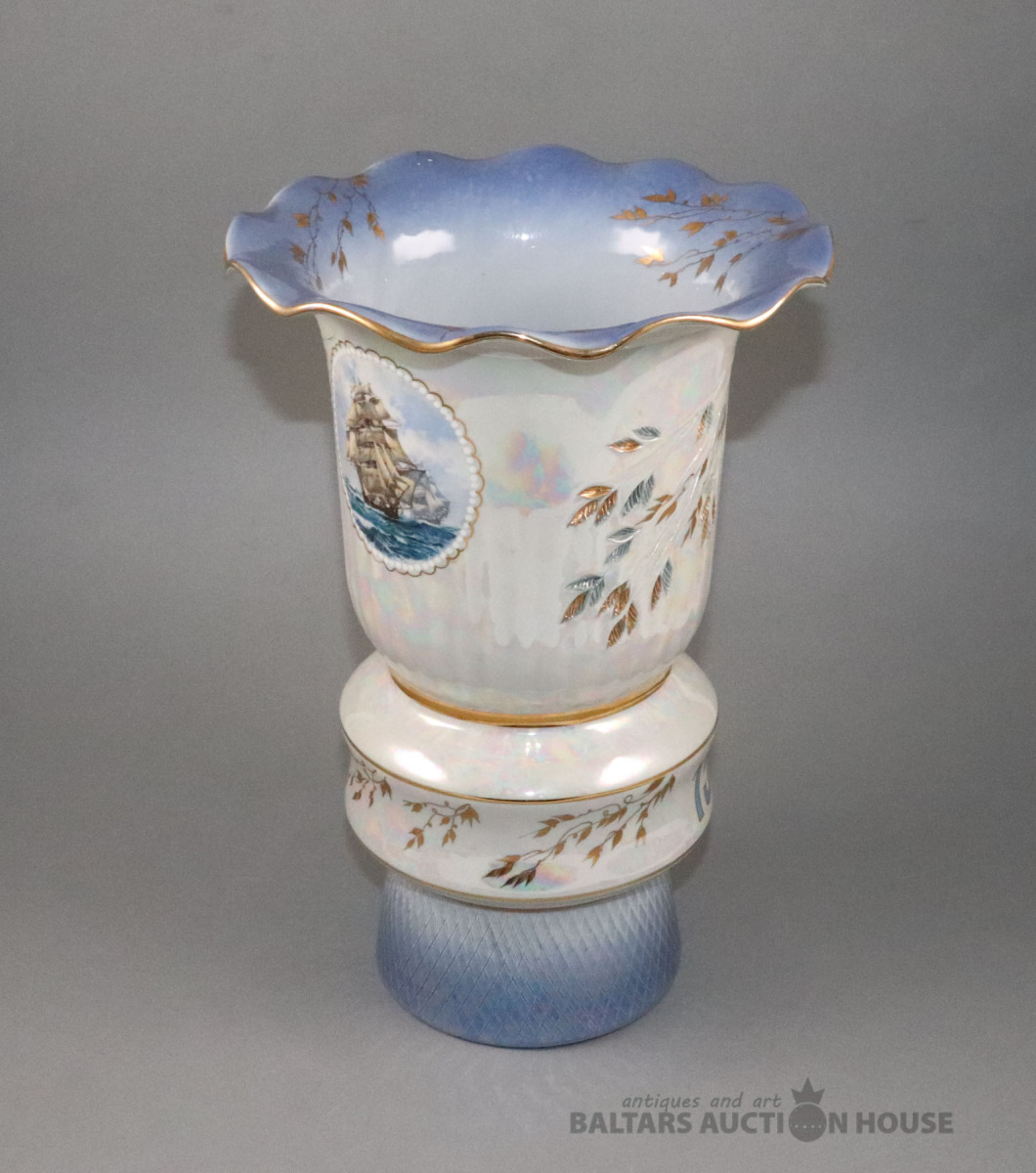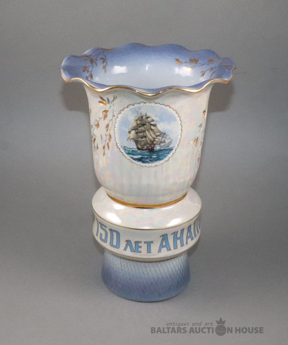 Vāze "150 gadi Anapai", porcelāns, gleznojums ar roku, kuģis un jūra=dekols, zeltījums, h=30,5 cm, autora paraksts, Rīga ? teicami saglabāta