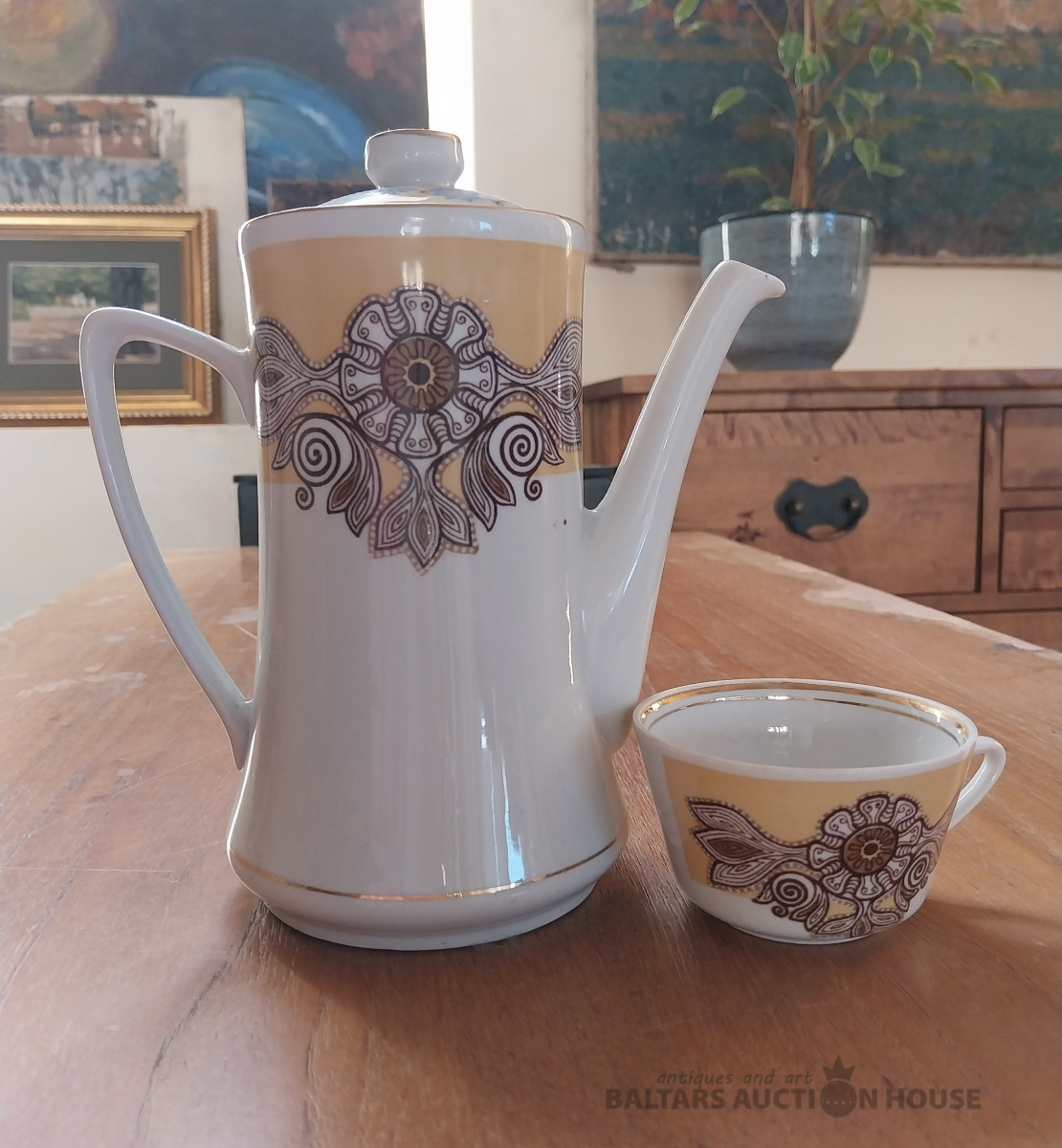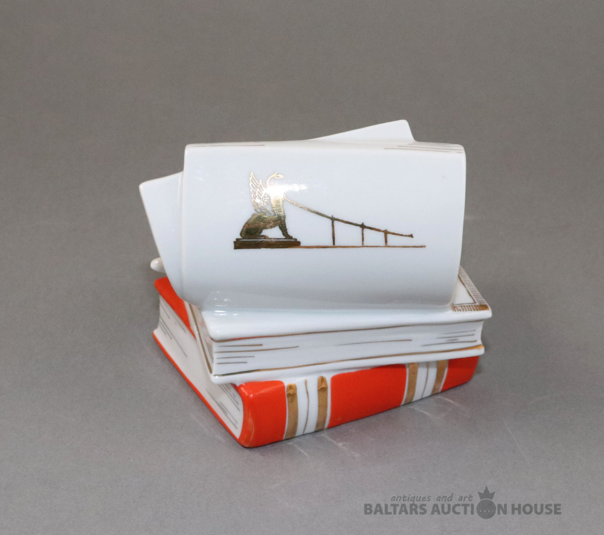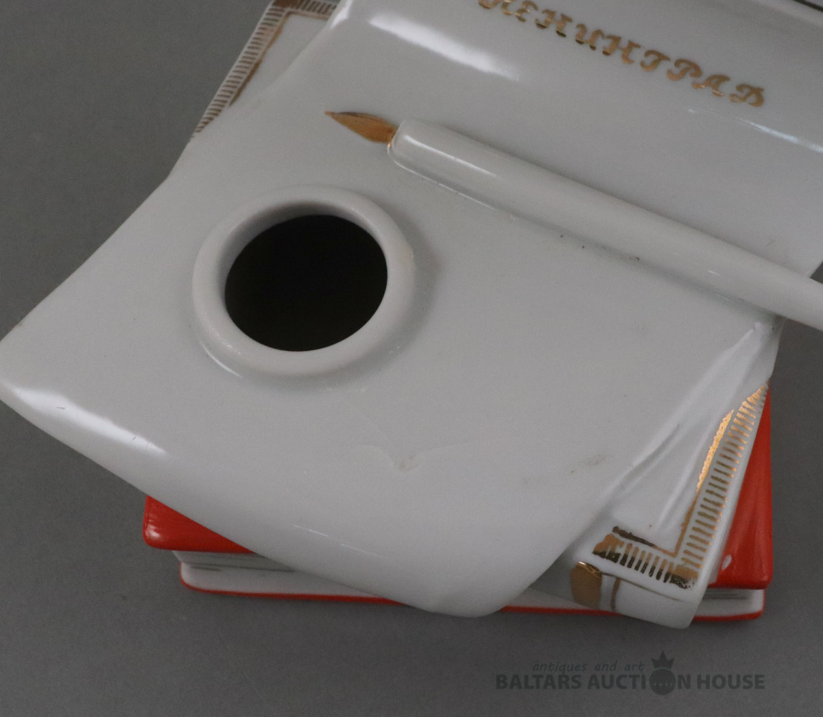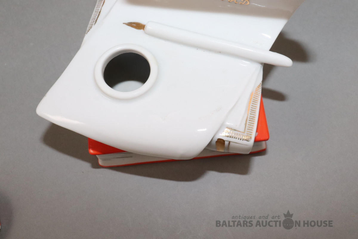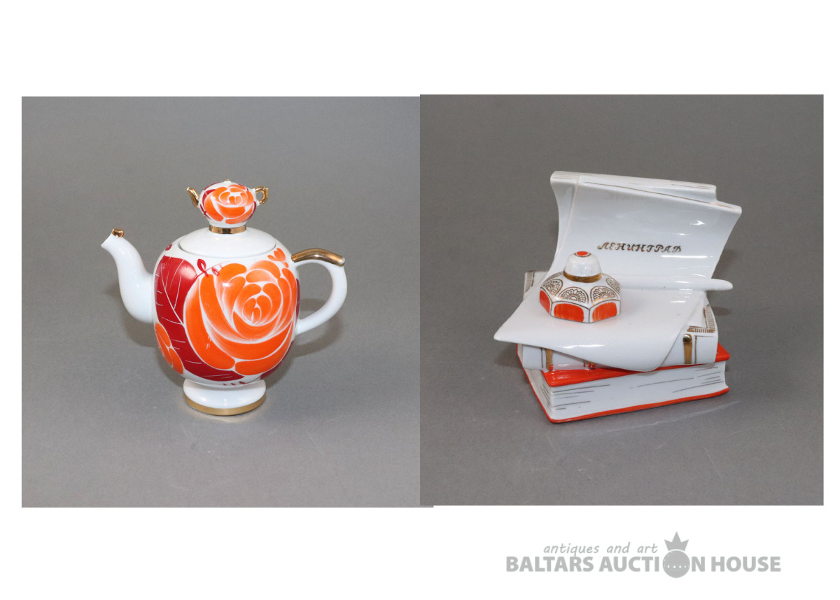 TĒJKANNIŅA. LFZ. Porcelāns. H=12,5 cm un TINTNĪCA. LFZ. Porcelans. Vāks līmēts, tintnīcai plaisa!