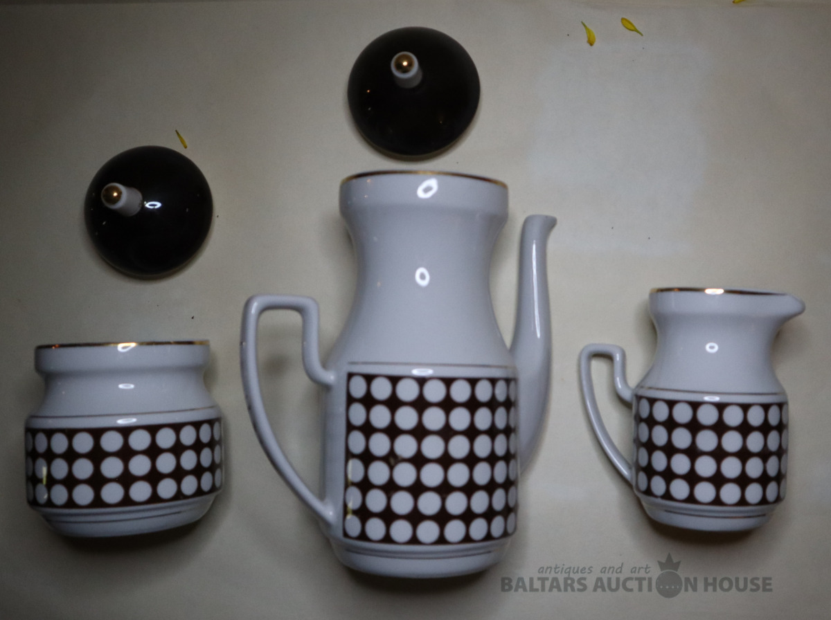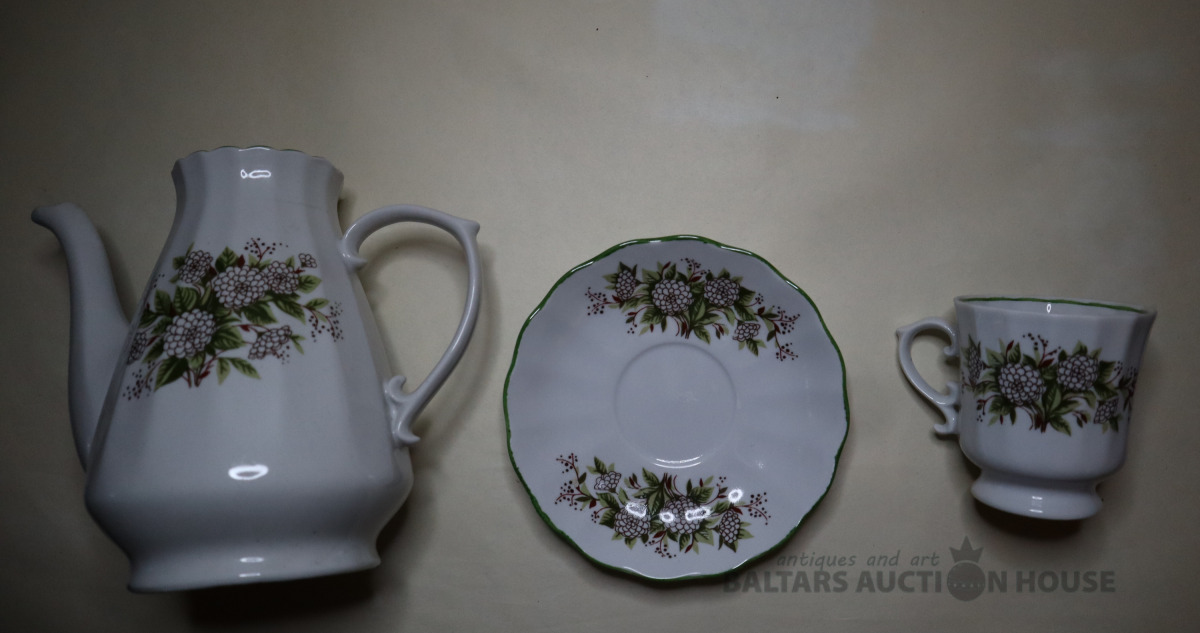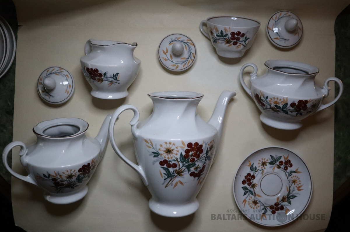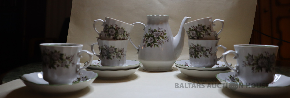 Porcelāna kafijas servīze Aija2. Cukurtraukam un vāciņam robiņš, un nav vienas krūzītes! RPF 1.šķira