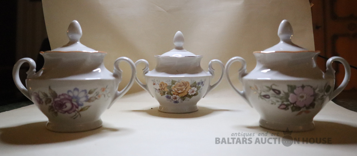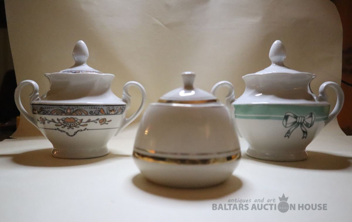 Trīs cukura trauciņi no tējas servīzēm. RPF