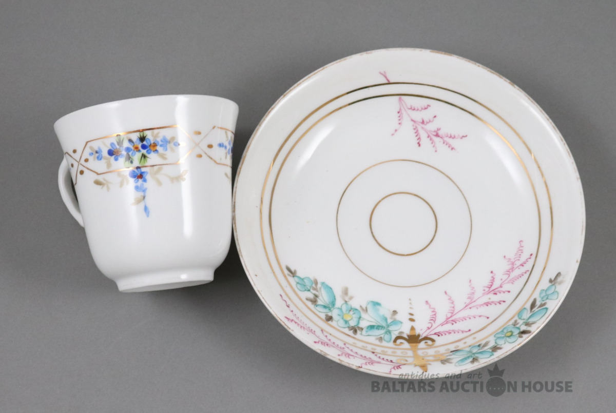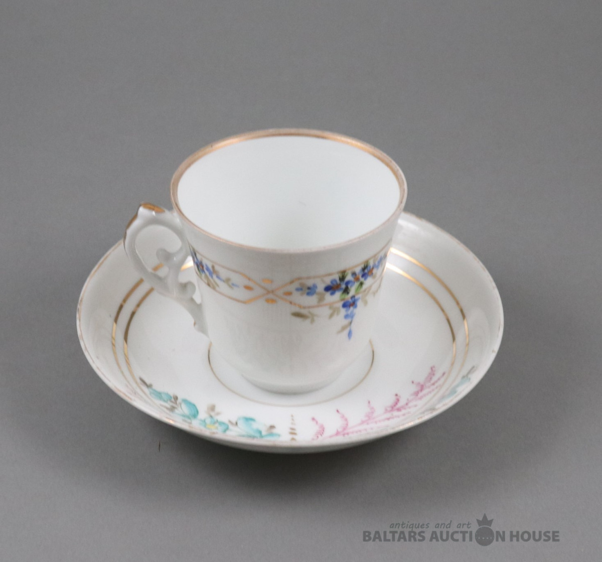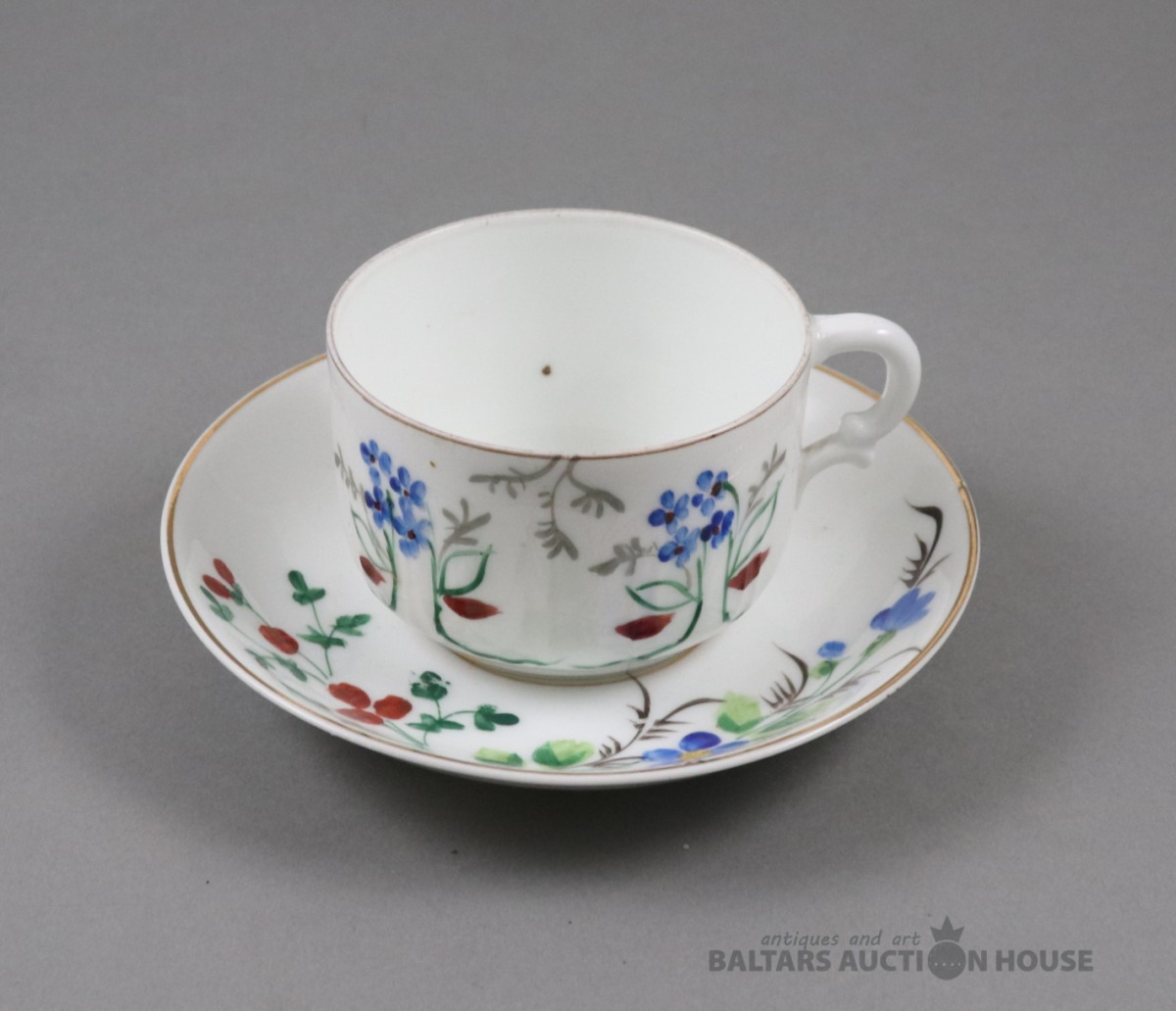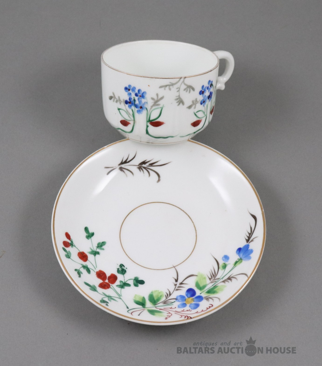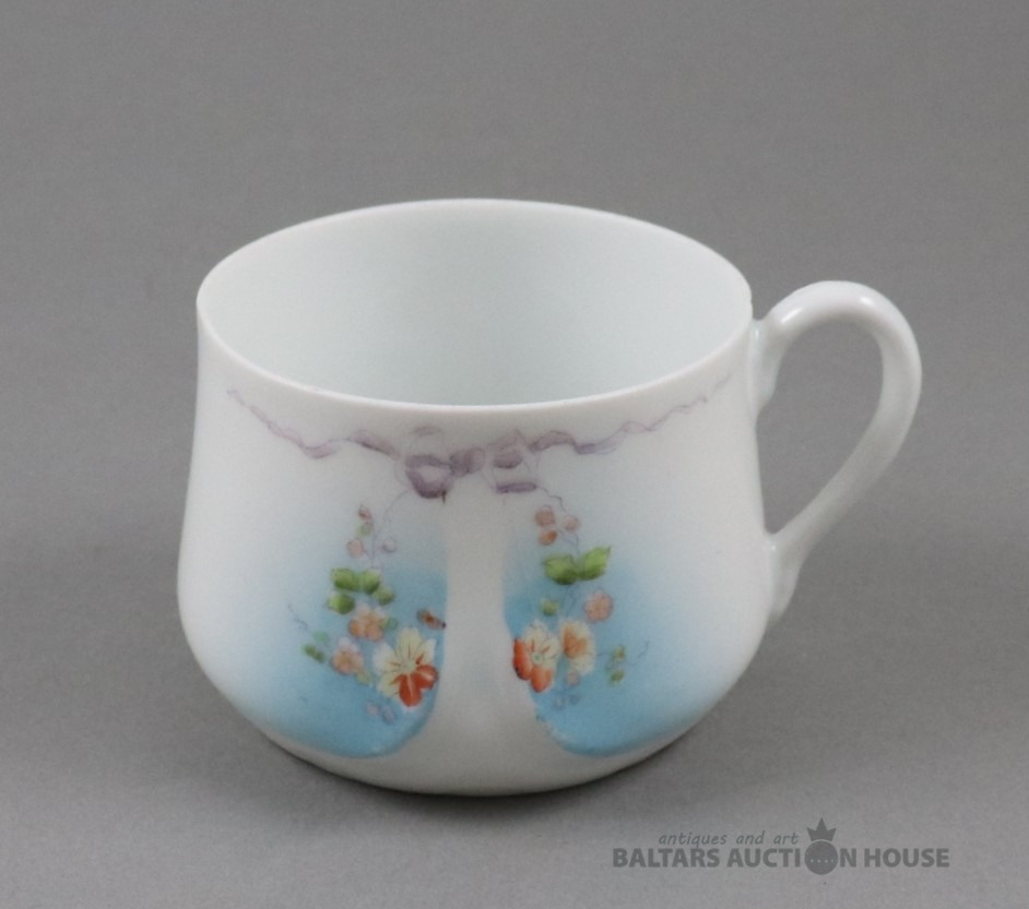 Tase. Porcelāns, Kuzņecova fab., roku gleznojums. h=5,7 cm. d=7,3 cm. Plaisa.