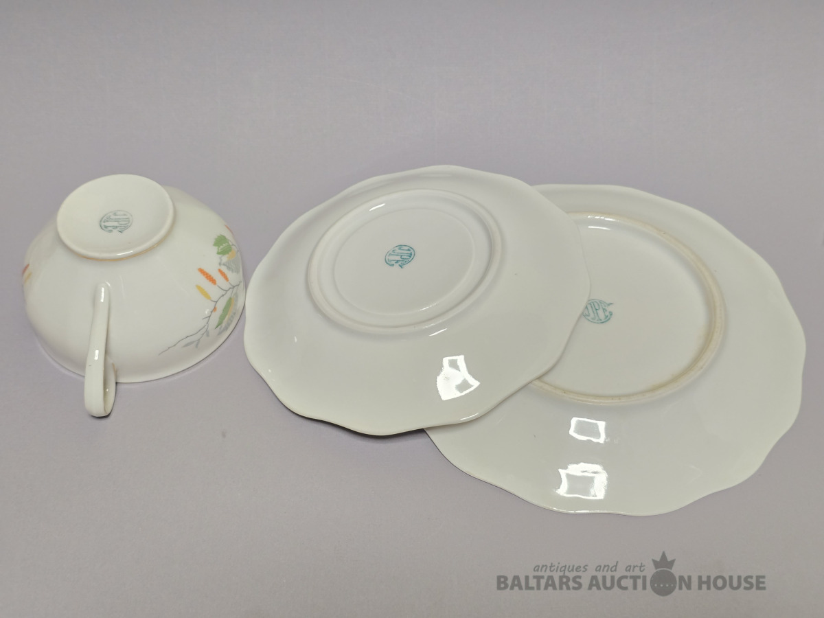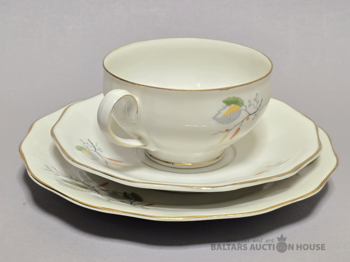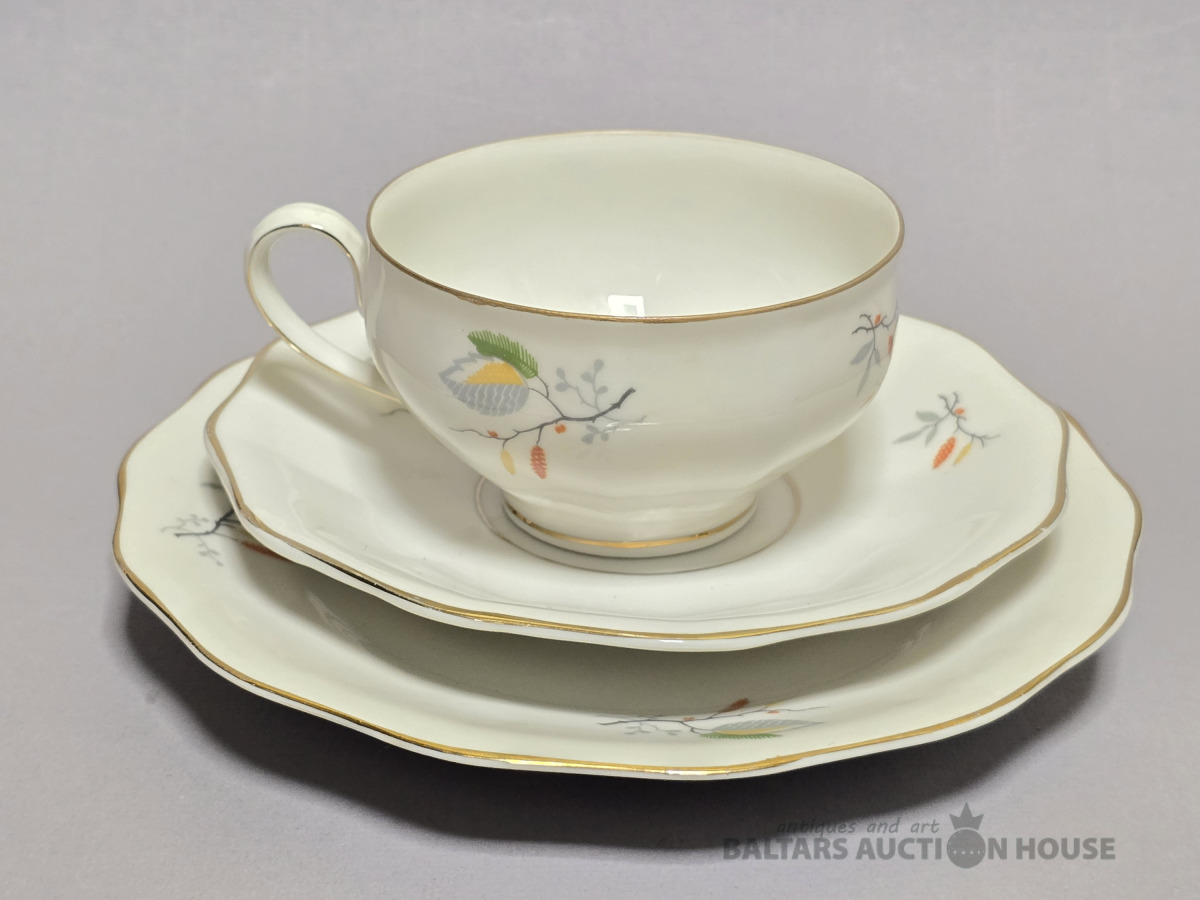 Porcelāna kafijas komplekts. Trio no servīzes Rubenss .Bērzu skariņu gleznojums. Roku darbs. Formas autors: KPM pirmskara forma "Rubens" Ražošanā: 20.gs. 30.-50.gadi Ideālā stāvoklī.
