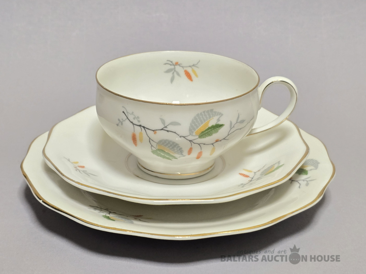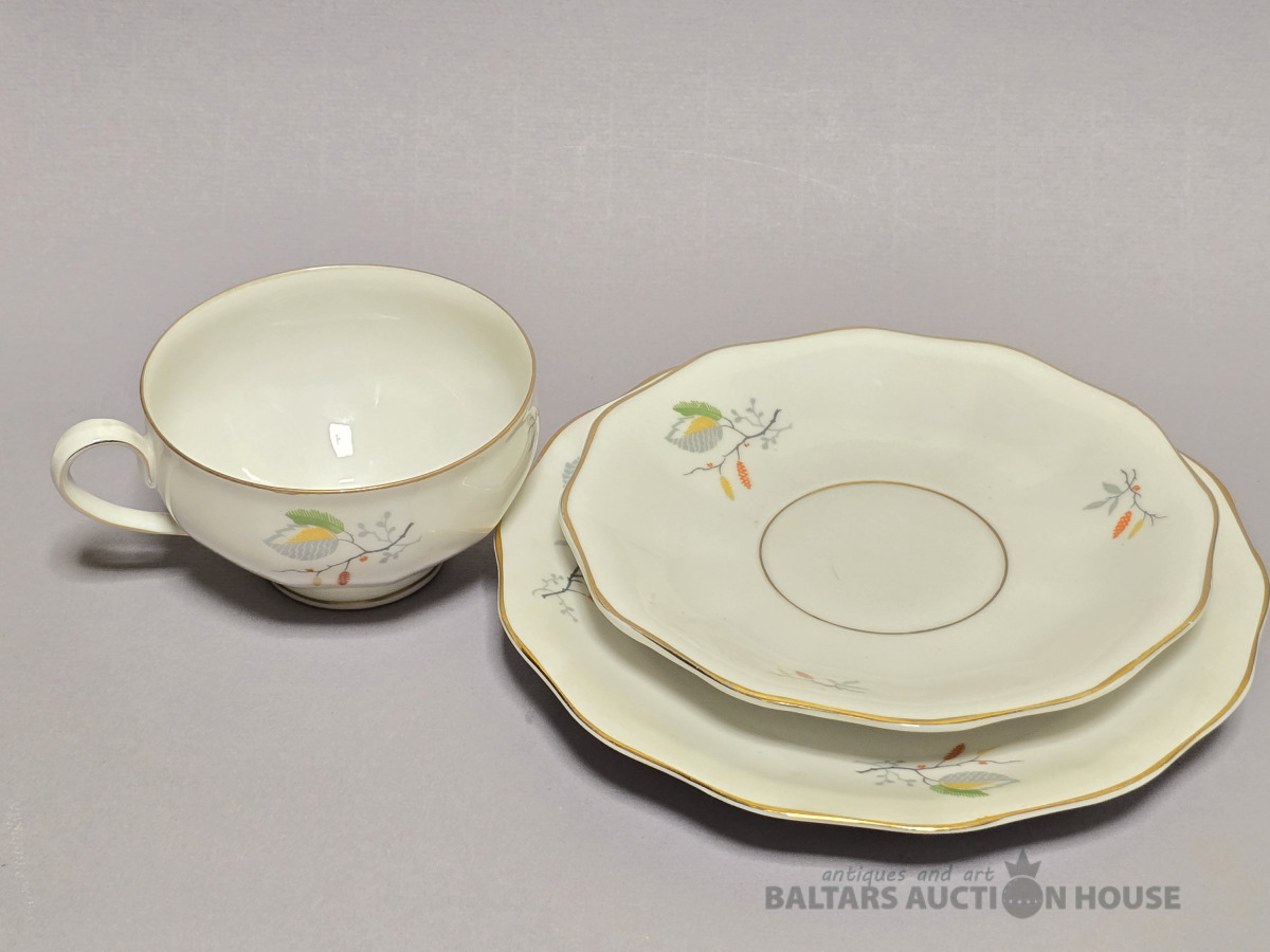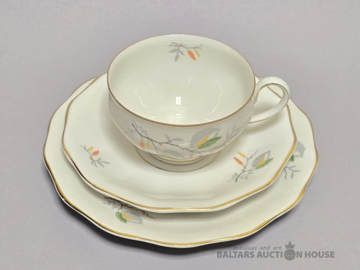 Porcelāna kafijas komplekts. Trio no servīzes Rubenss .Bērzu skariņu gleznojums. Roku darbs. Formas autors: KPM pirmskara forma "Rubens" Ražošanā: 20.gs. 30.-50.gadi Ideālā stāvoklī.