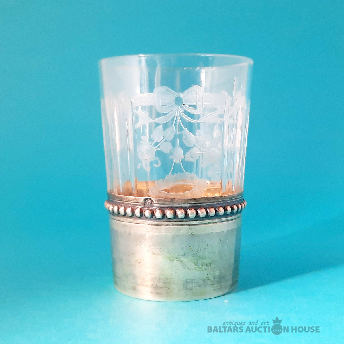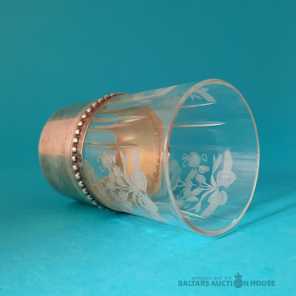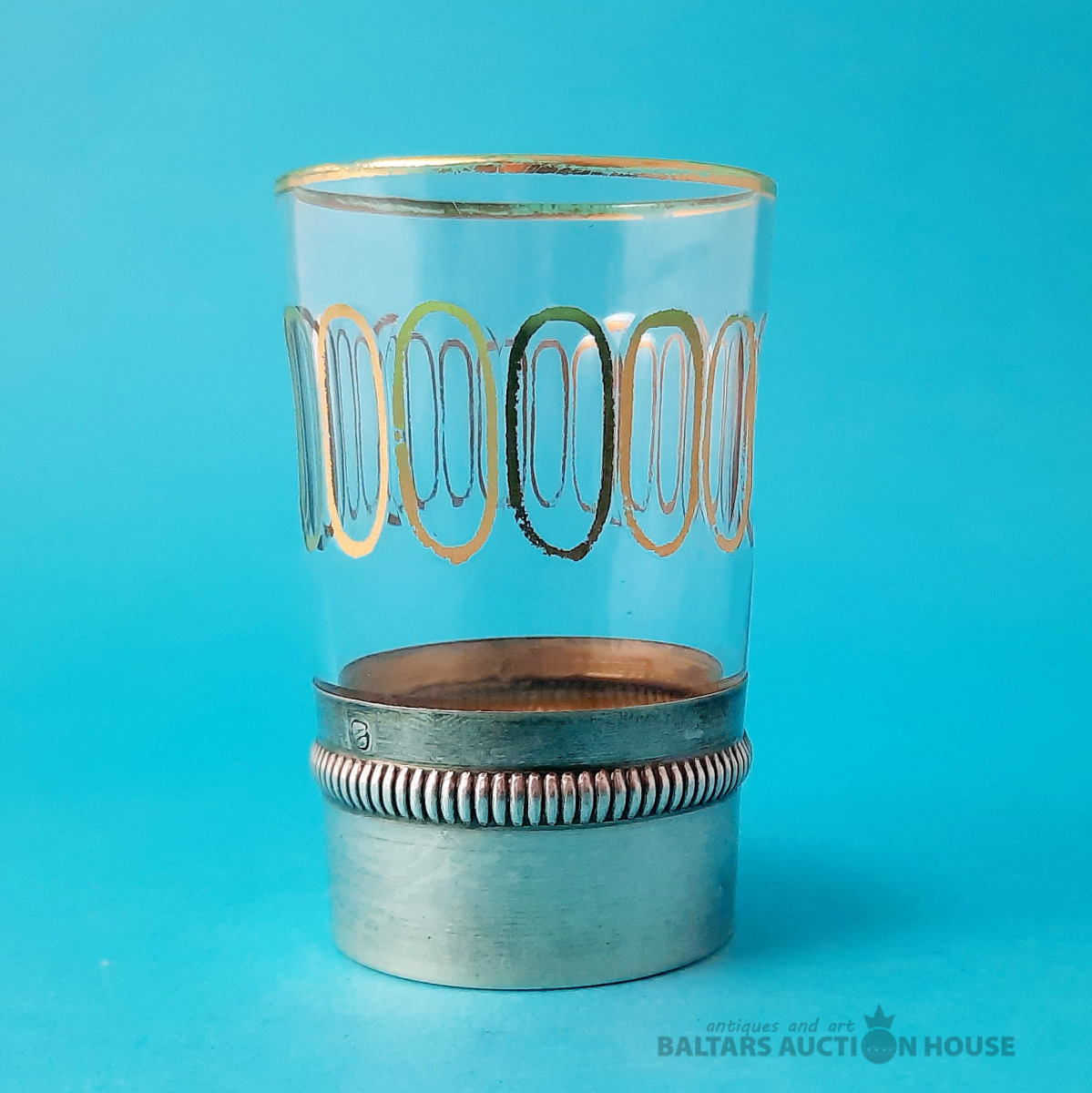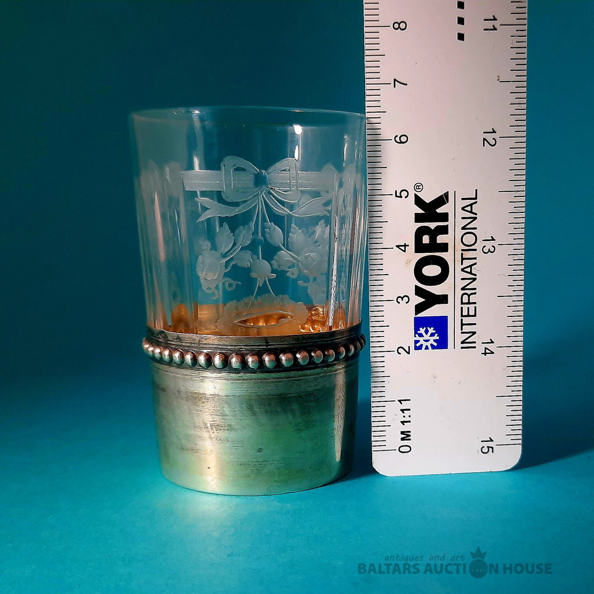 Antīks stikls. Stikls. Sudrabs. Apzeltījums. Eiropa. Sudraba svars ir 10,85 grami.
