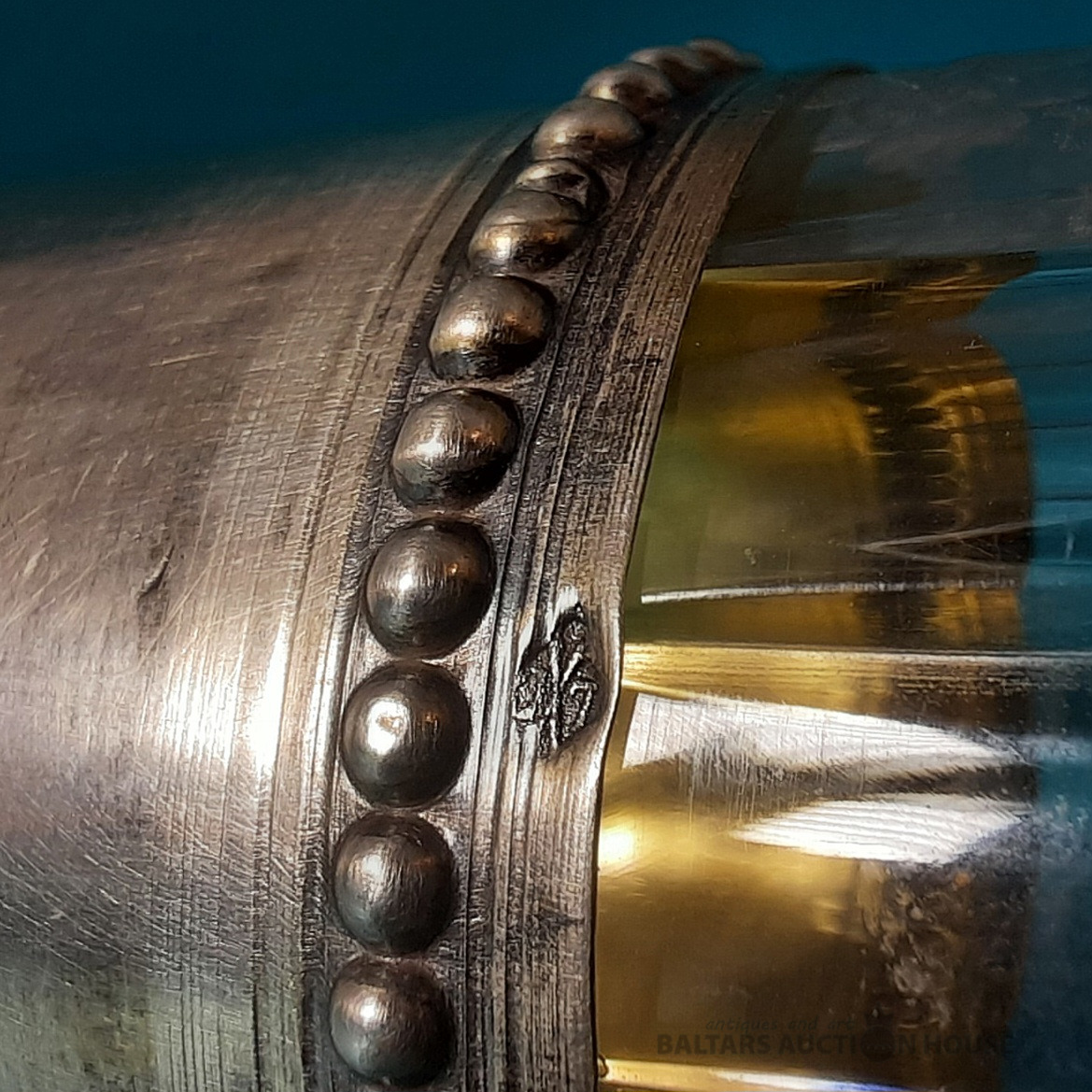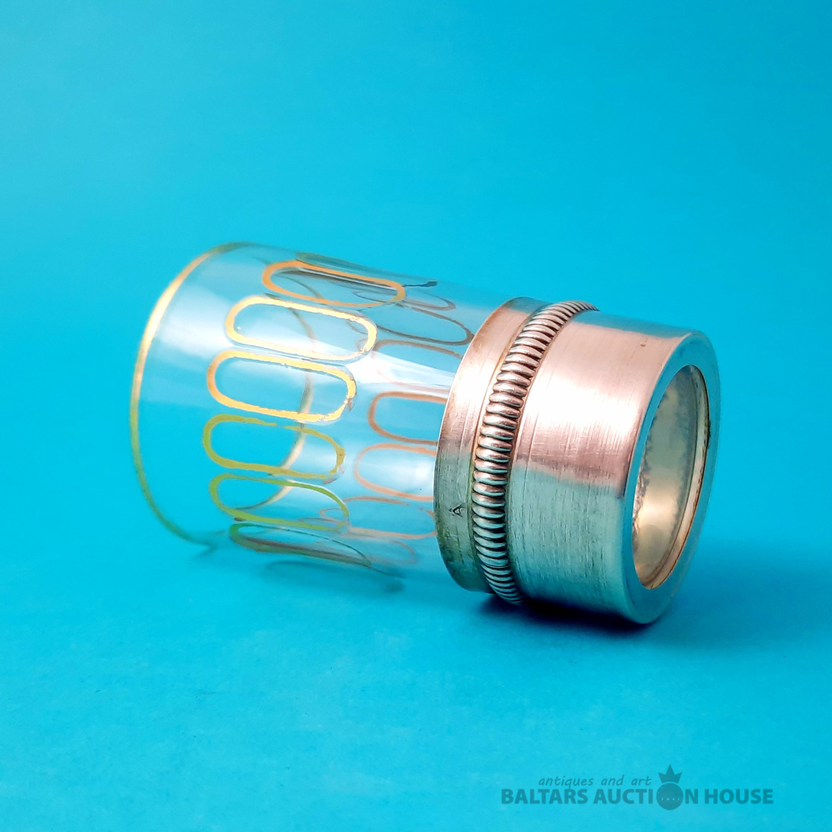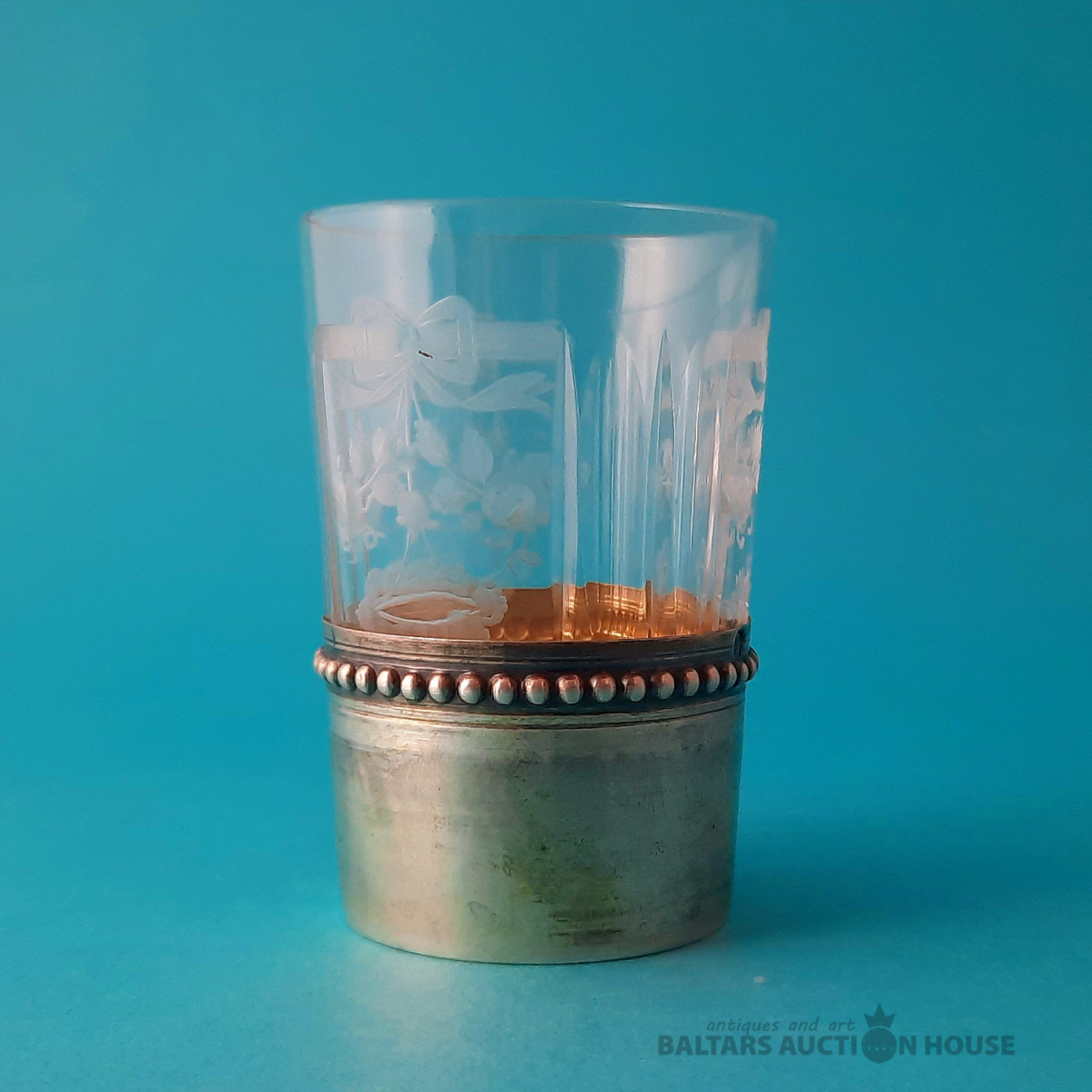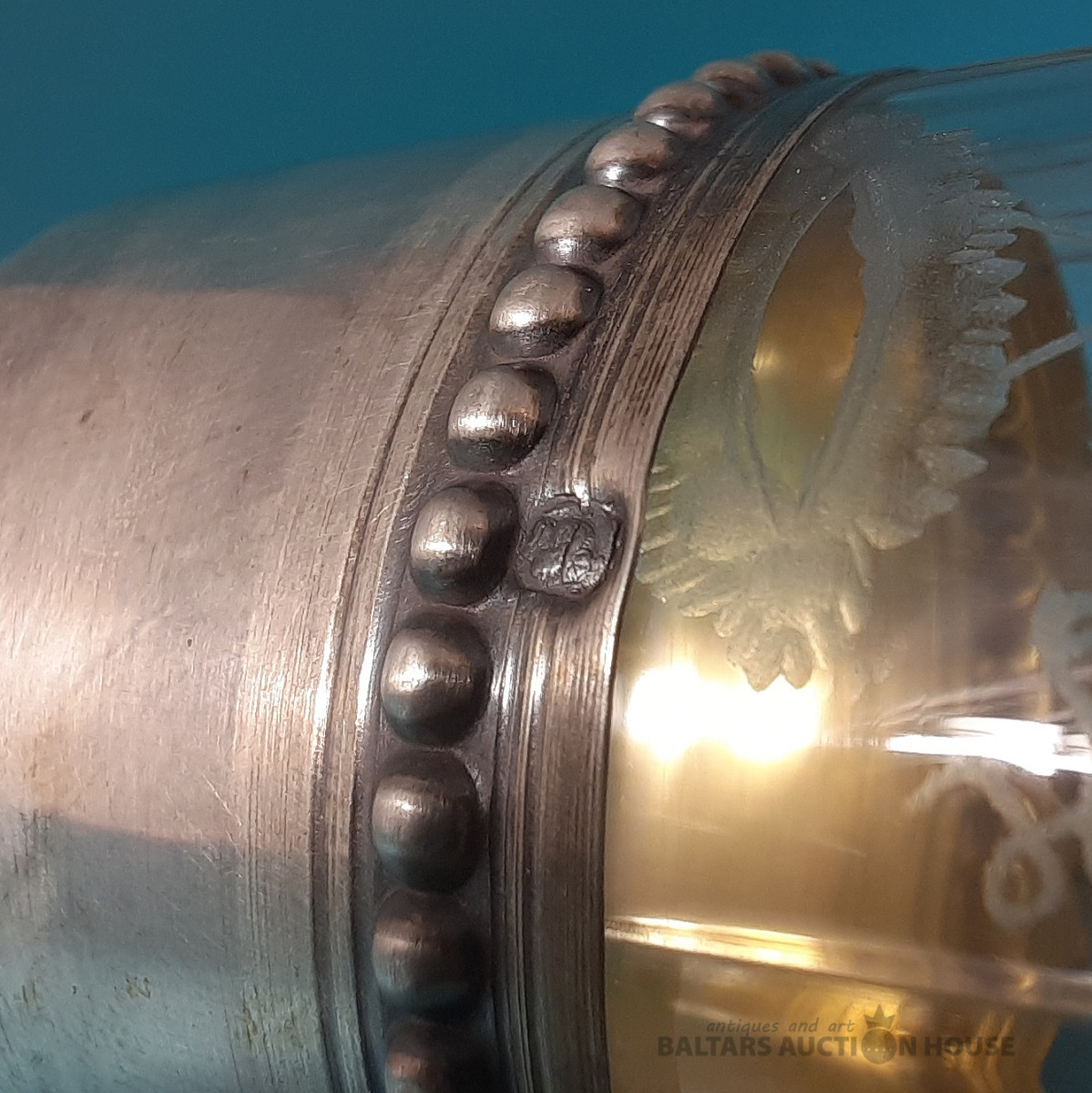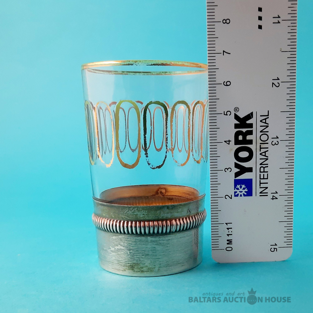 Antīks stikls. Stikls. Sudrabs. Apzeltījums. Eiropa. Sudraba svars ir 10,85 grami.