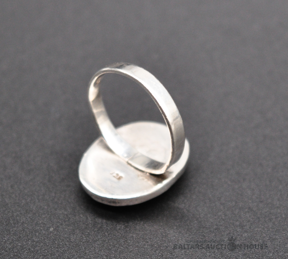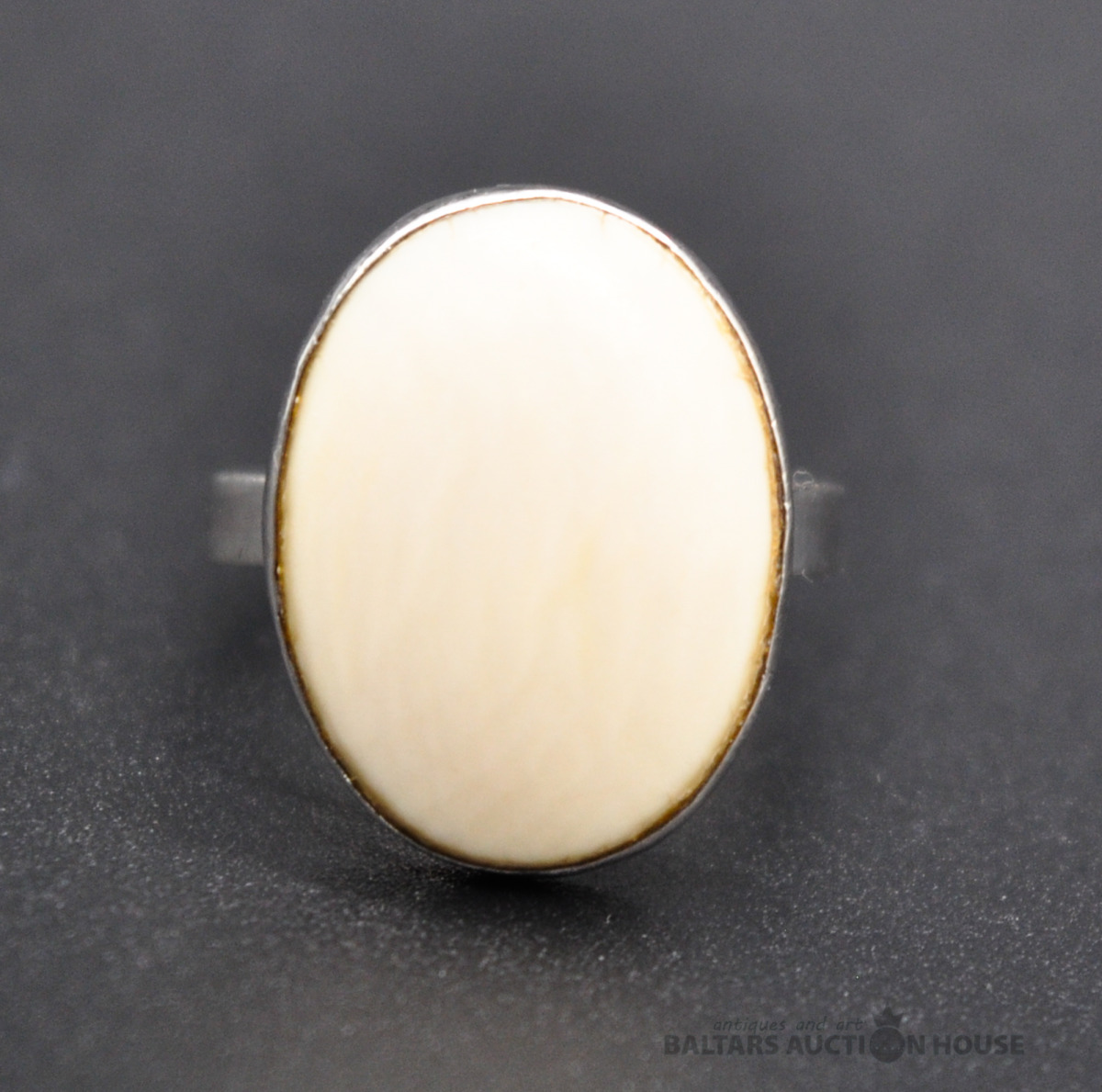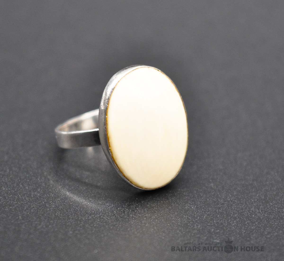 Sudraba gredzens ar ziloņkaula akcentu. Izmērs 16 un 3/4 mm. Svars 3.4 grami. Серебряное кольцо с акцентом из слоновой кости. Размер 16 и 3/4 mm. Вес 3.4 грамма.