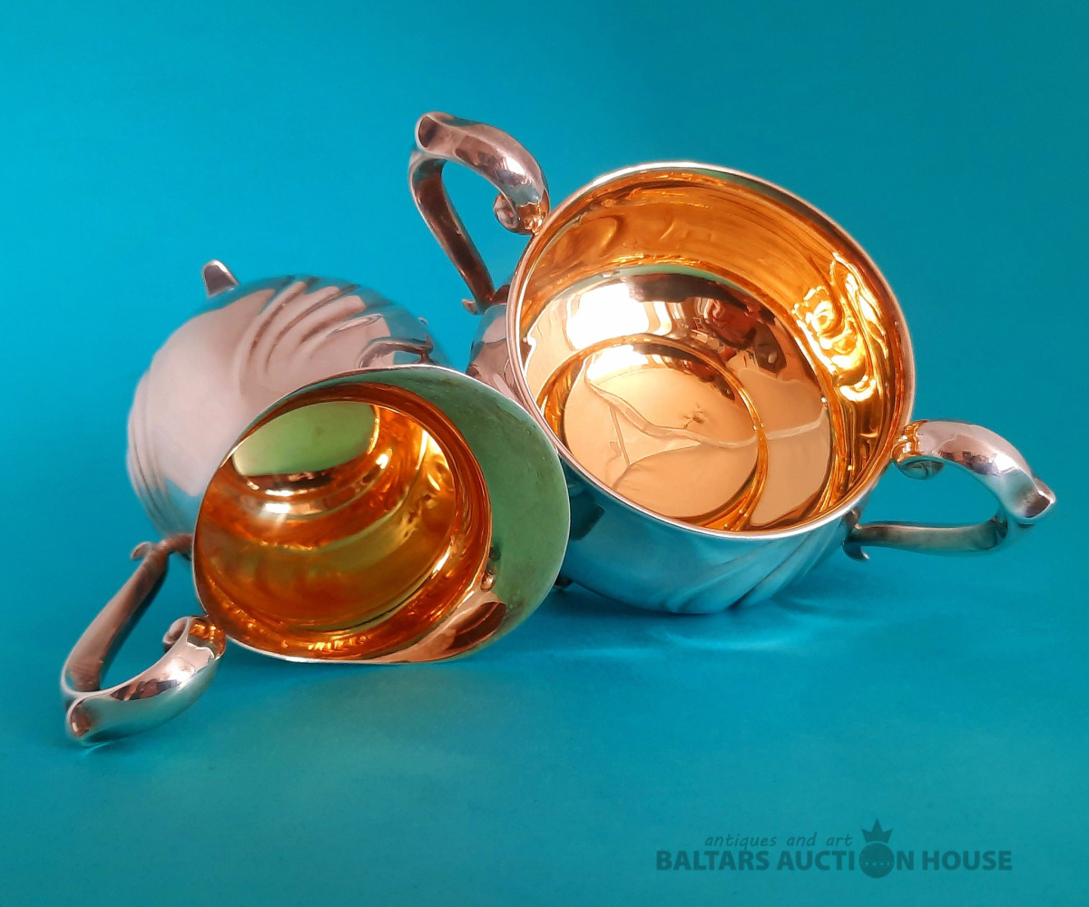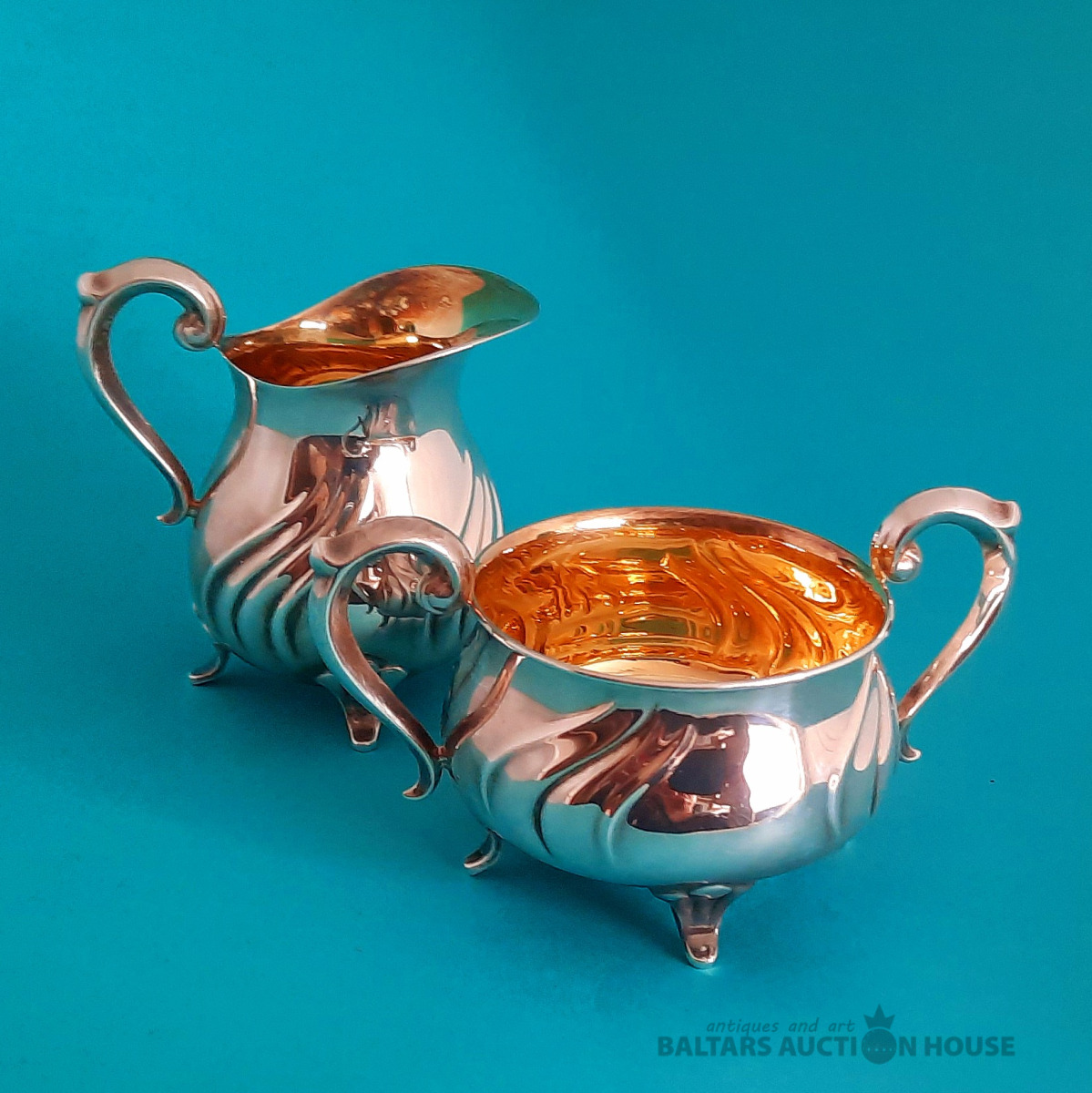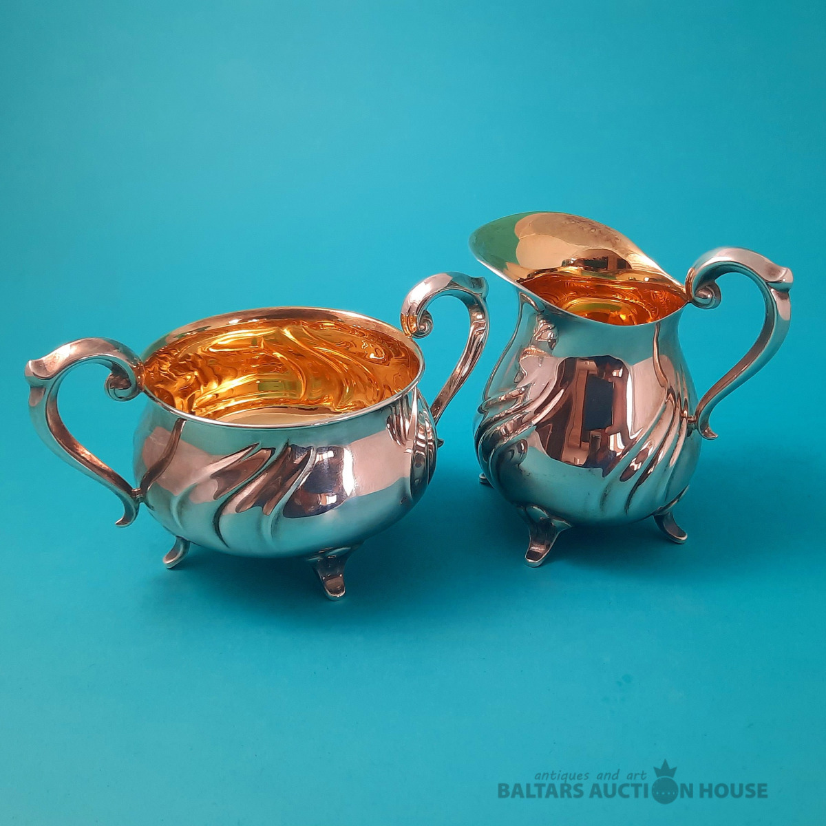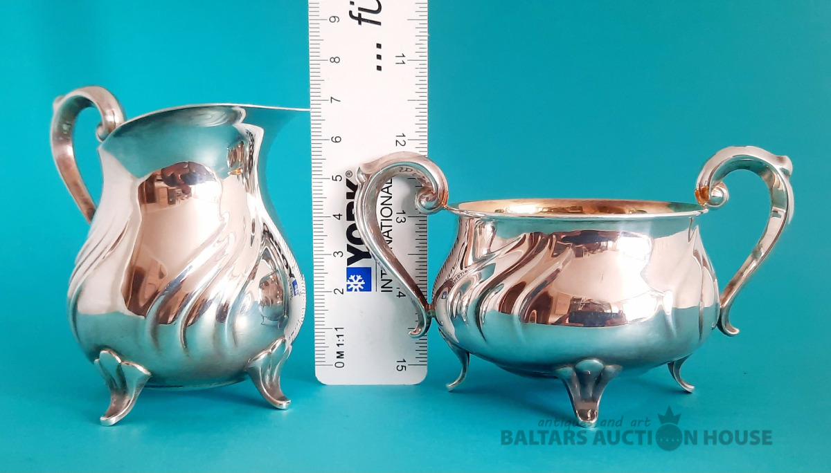 Cukurtrauks un krējuma trauks, sudrabs, 813. prove, kopējais svars 125 g, Somija. Ražotājs: Turun Hopea, Turku.