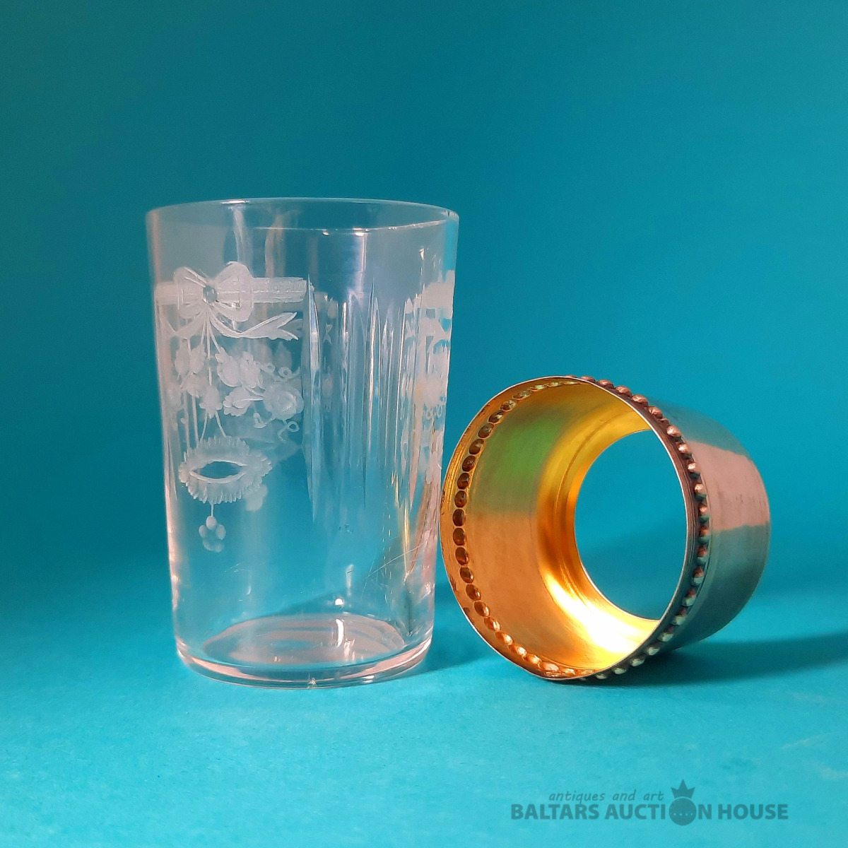 Antīks stikls. Stikls. Sudrabs. Apzeltījums. Eiropa. Sudraba kopējais svars ir 59 grami.
