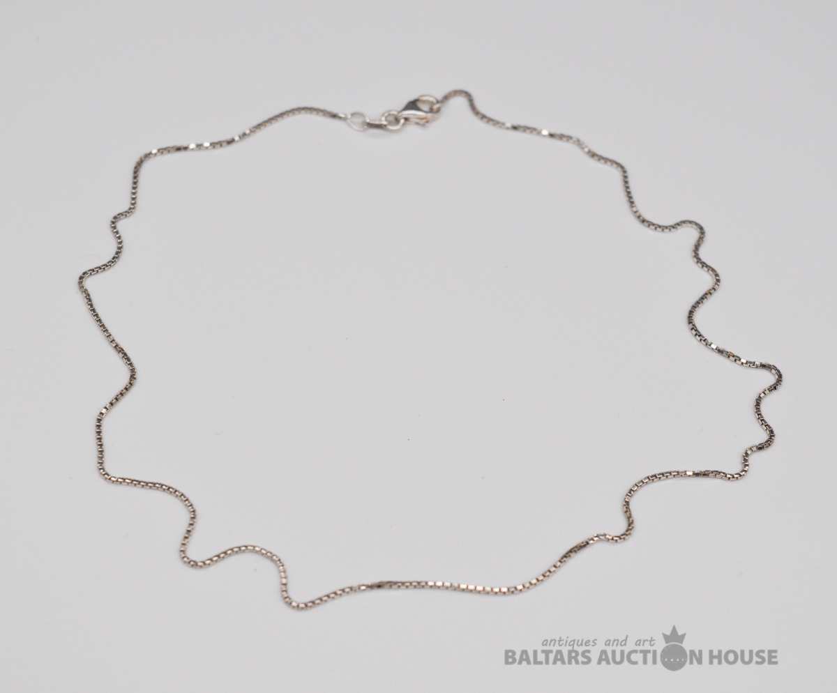 Sudraba ķēdīte. Garums 39.5 cm. Svars 2.4 grami. Серебряная цепочка. Длина 39.5 см. Вес 2.4 грамма.