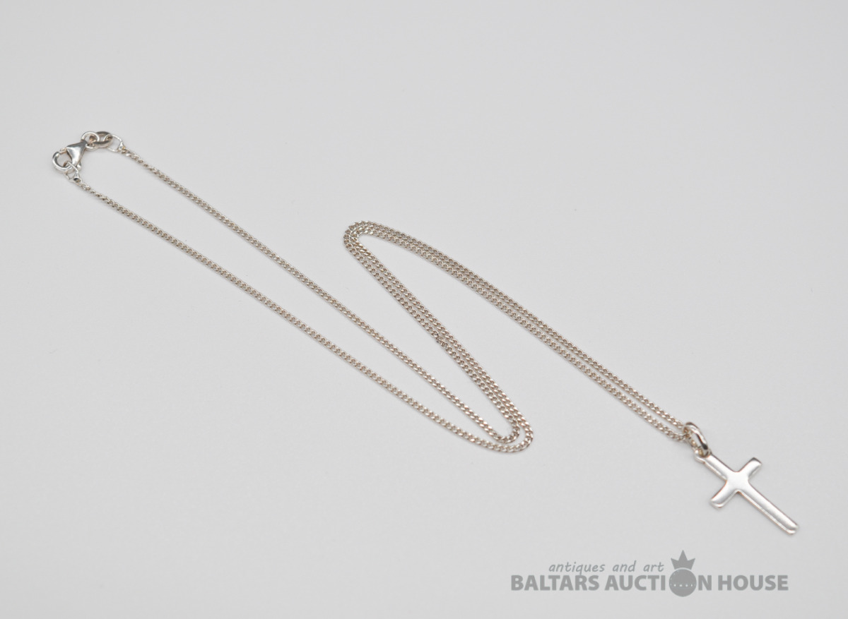 Sudraba ķēdīte ar piekariņu (Krustiņu) Garums 44.5 cm. Svars 3.1 grams. Серебряная цепочка с крестиком. Длина 44.5 см. Вес 3.1 грамма.