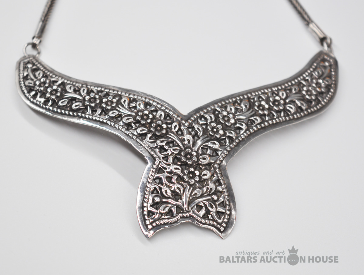 Etniska stila sudraba kaklarota. Roku darbs. Garums 44 cm. Svars 38 grami. Серебряное украшение. Ручная ковка. Длина 44 см. Вес 38 грамм.