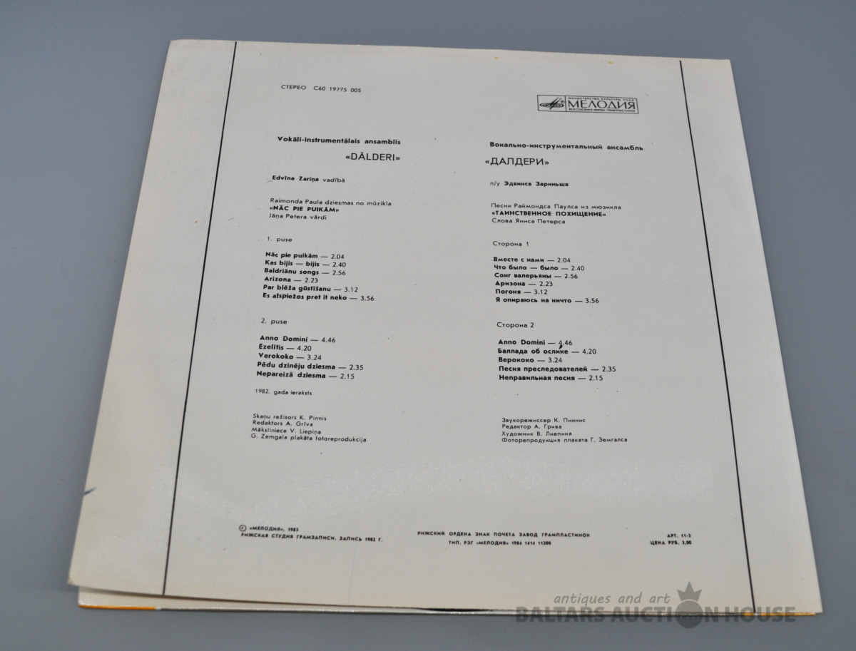 Dalderi-dziesmas no mūzikla Nāc pie Puikām. Teicamā stāvoklī. Pārbaudīta.