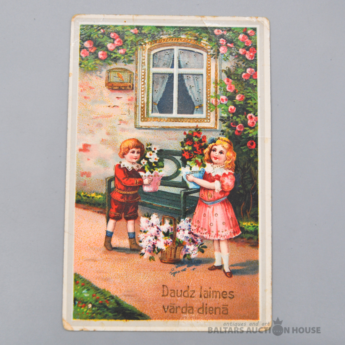 Atklātne. Daudz laimes vārda dienā. Neliels reljefs.