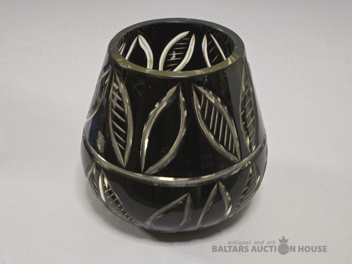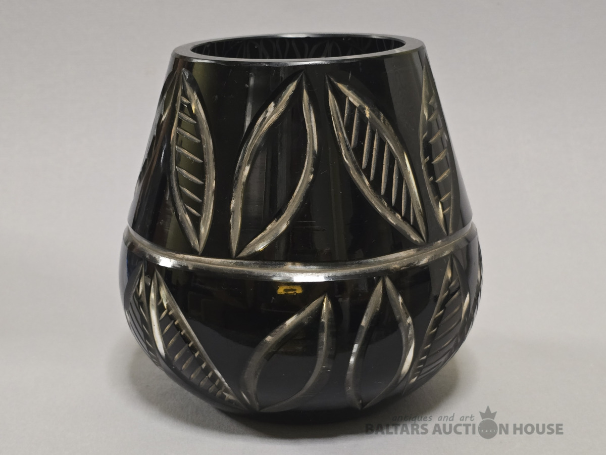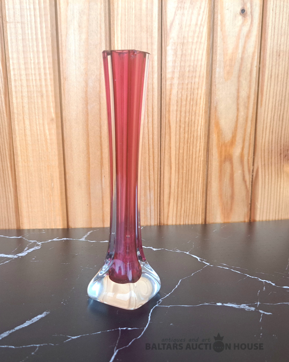Krāsainā stikla vāze. Iļģuciema stikla fabrika. Divkrāsains stikls,slīpējums H 14 cm.
