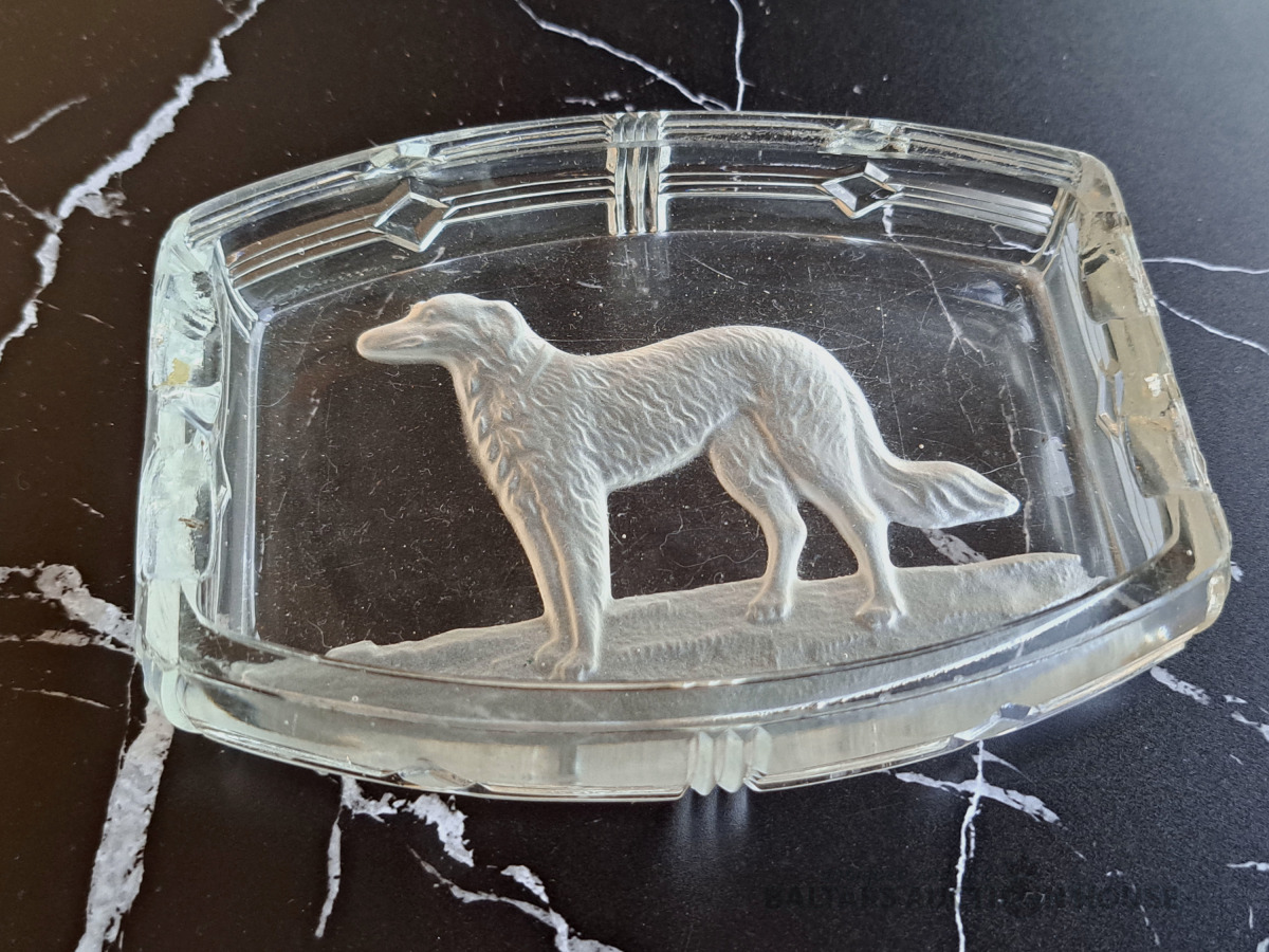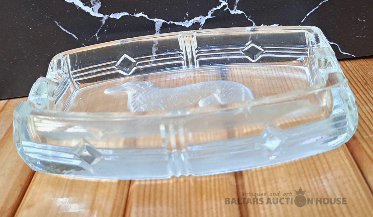 Medību tēma, pelnutrauks ar suni., 13x9 cm.