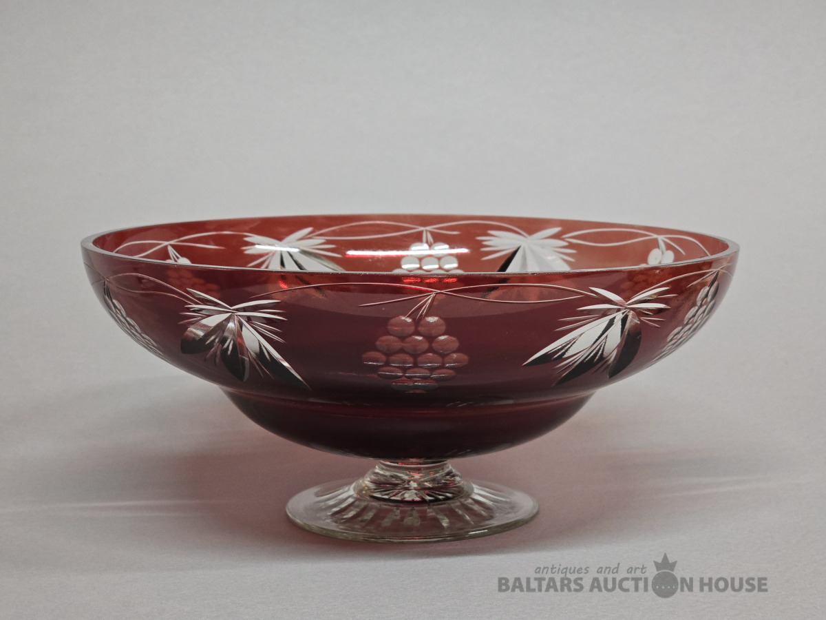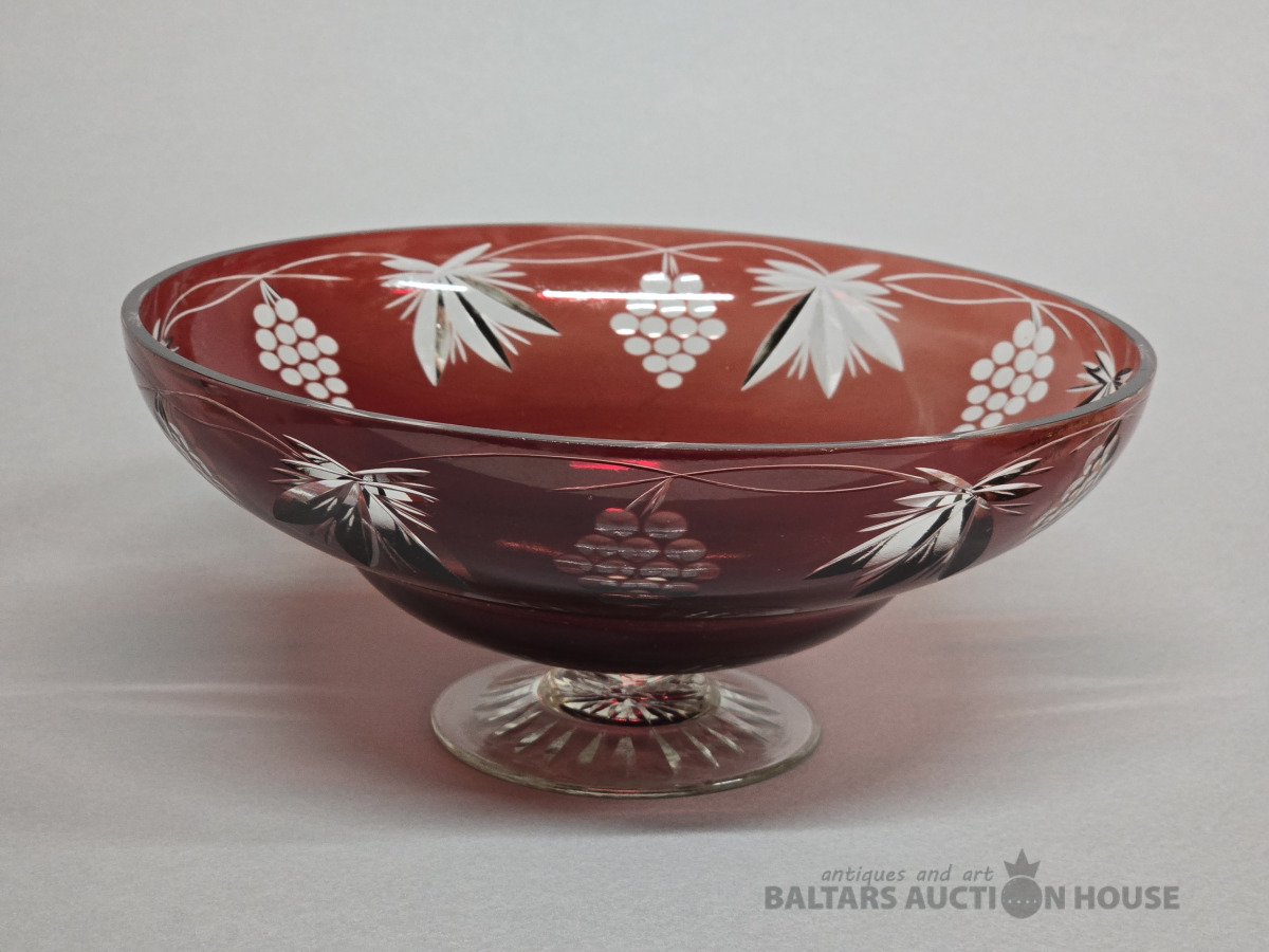 Stikla augļu trauks Līdz 1917. g. Jakoba Beka stikla fabrika.Krievija.D 28 cm H 20 cm
