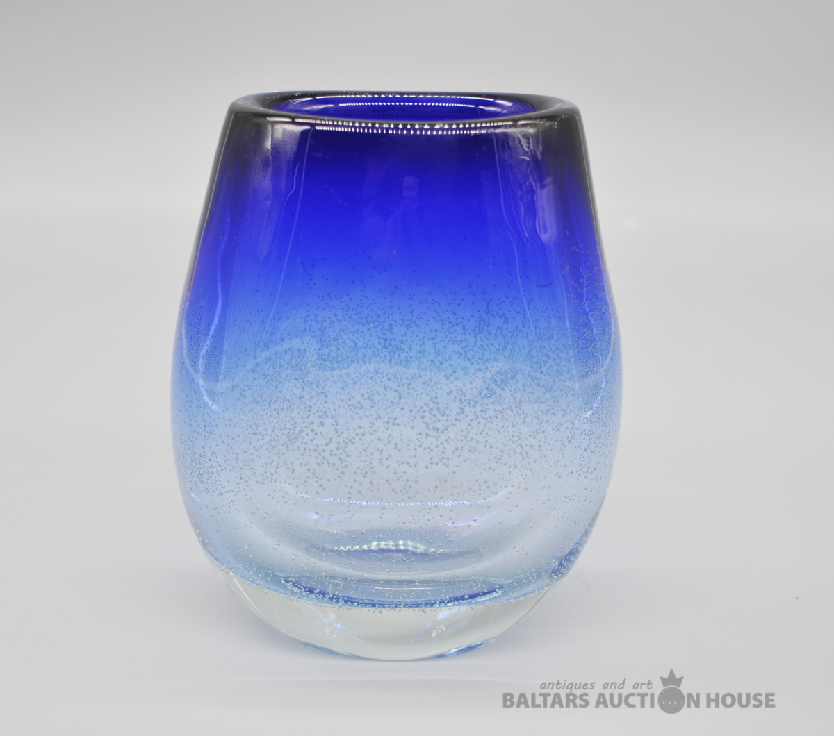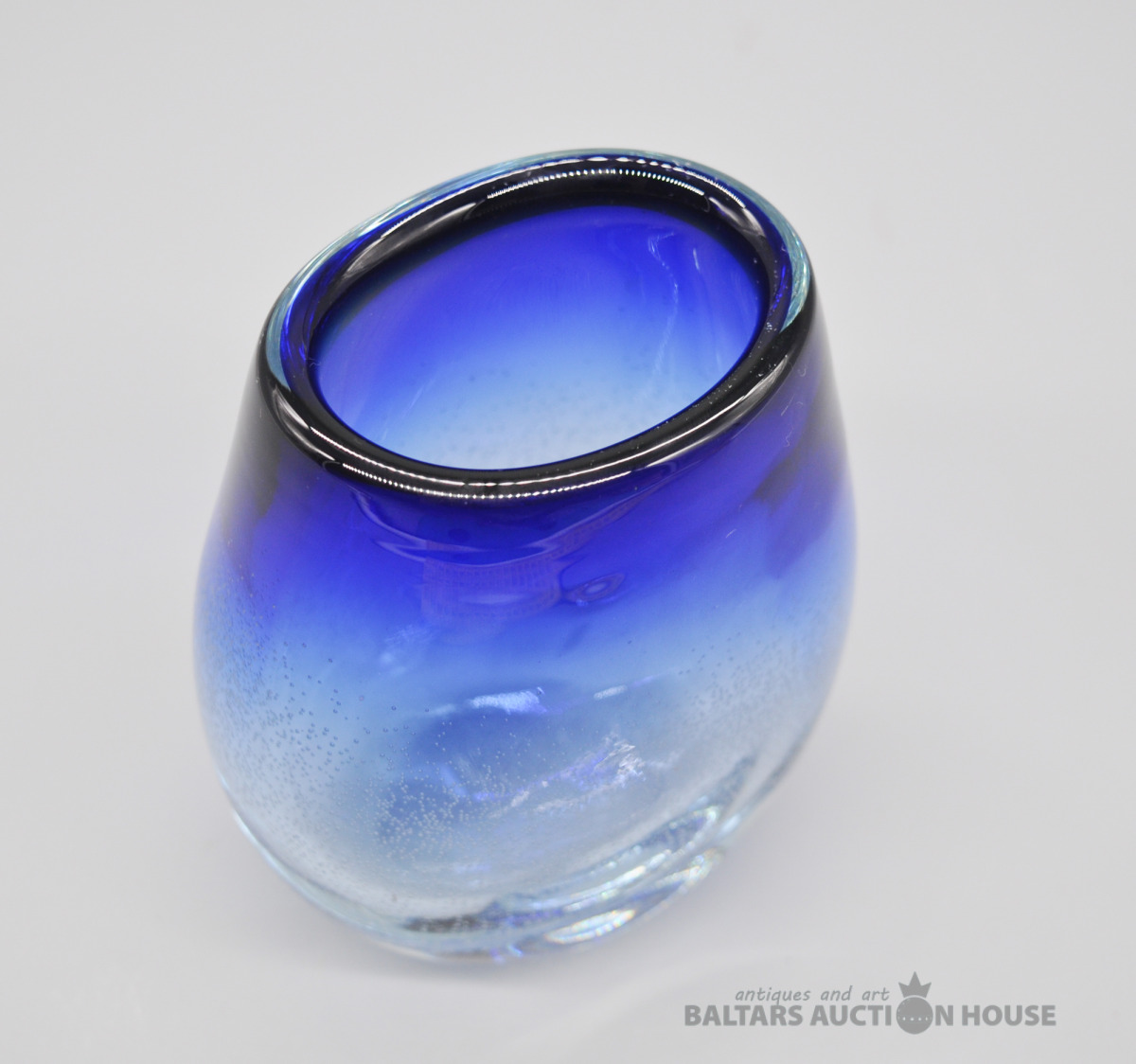 Maza vāzīte. Vara sulfāta stikls. , Izm. h-12cm, d-11,5cm