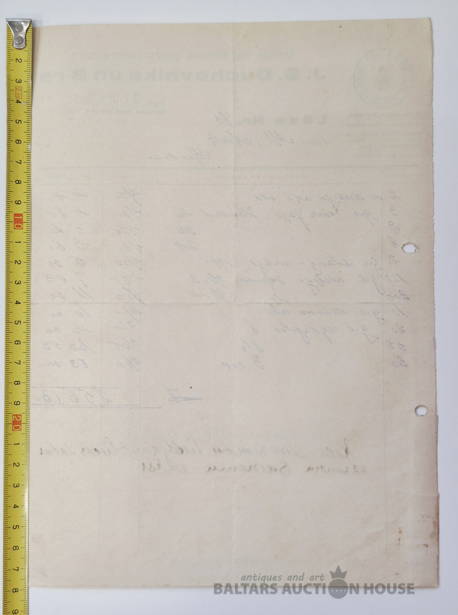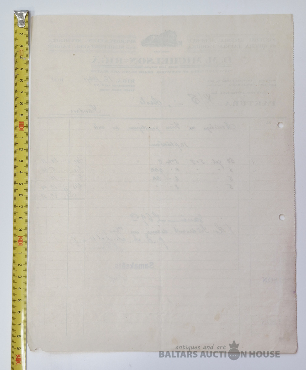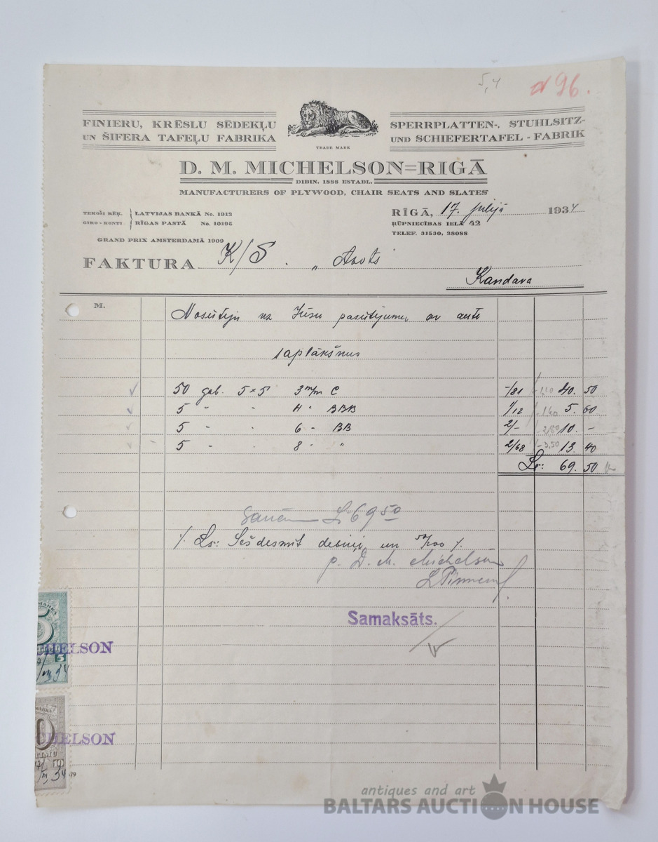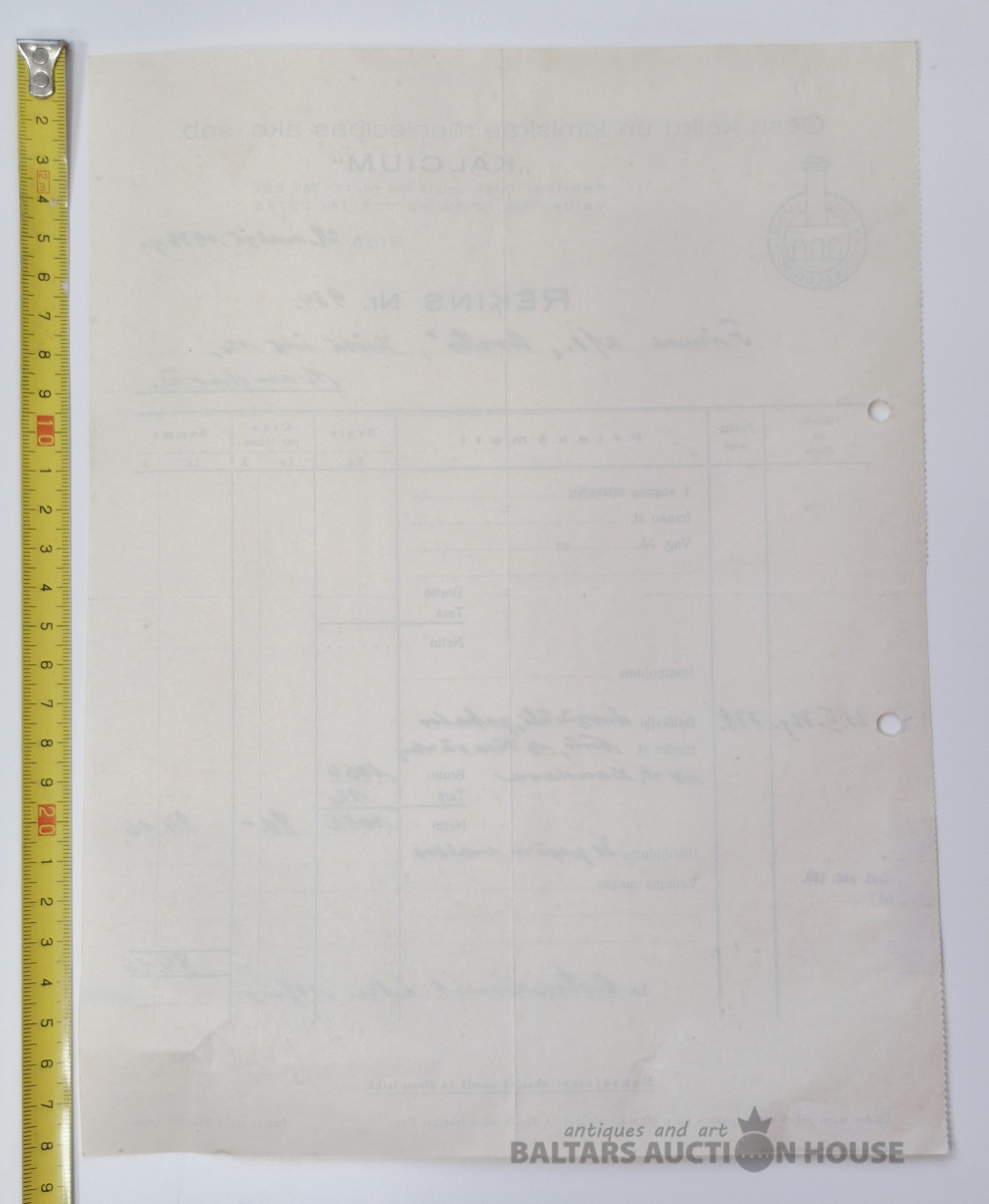 Faktura. Finieru, krēslu sēdekļu un šīfera tādēļ fabrika Rīgā, 1934g.