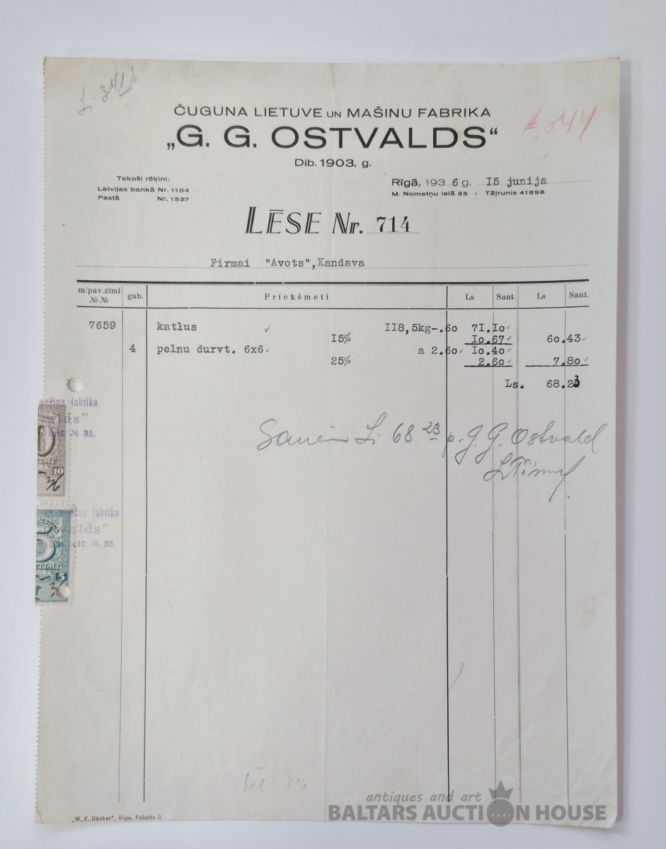 Lēse. Čuguna lietuve un mašīnu fabrika "G. G. Ostvalds", 1936g.