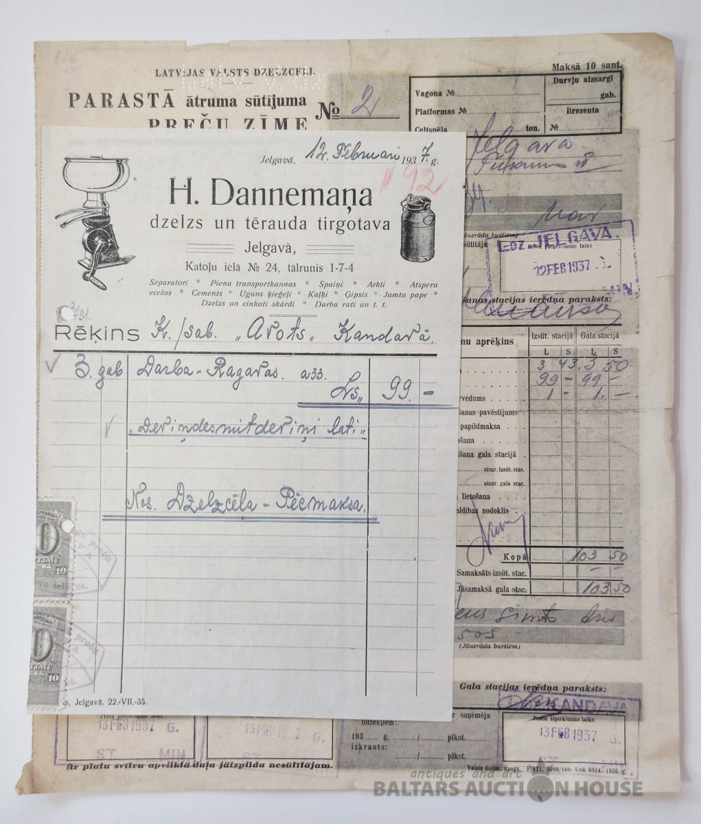 Rēķins. Dzelzs un tērauda tirgotava, Jelgava, 1937g.