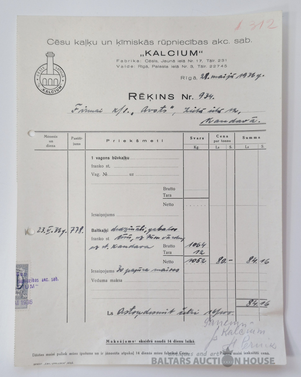 Cēsu kaļķu un ķīmiskās rūpniecības a/s " Kalcium", 1936g.