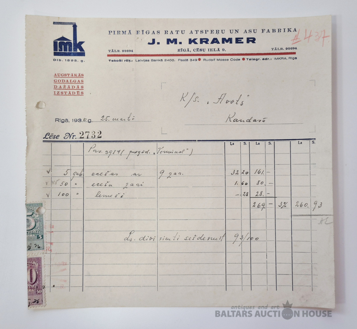 Lēse. Pirmā Rīgas ratu atsperu un asu fabrika J. M. Kramer, 1936g.