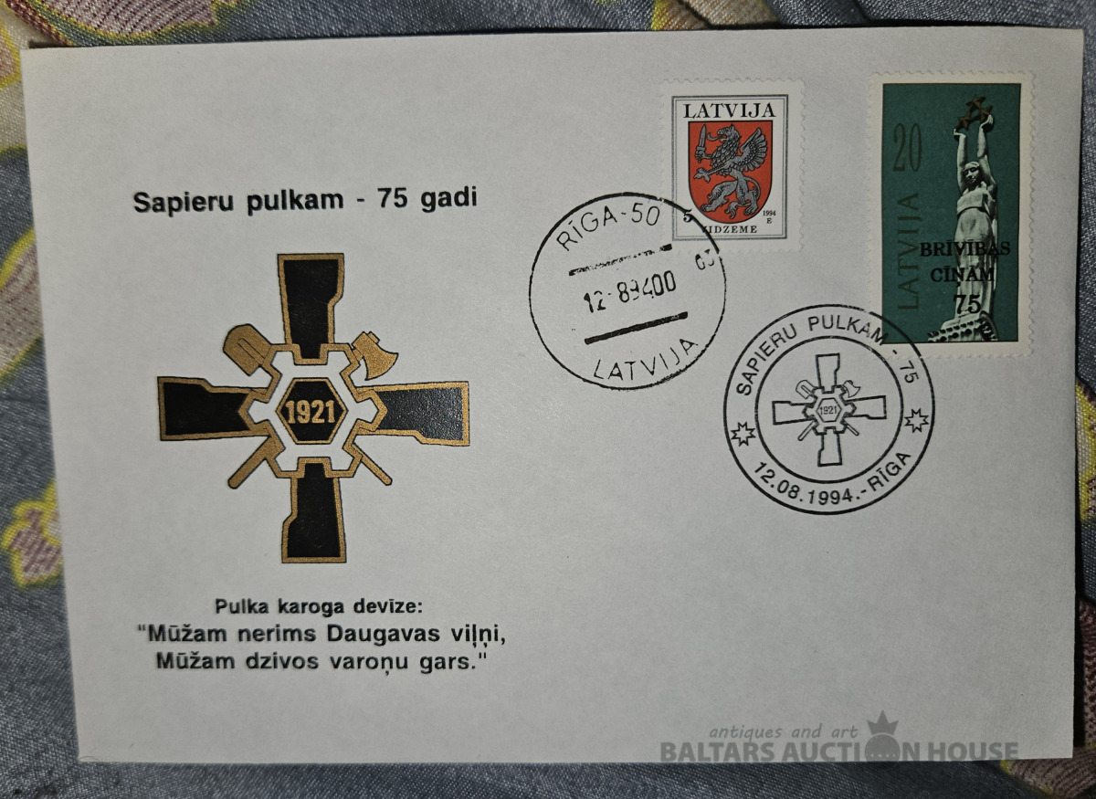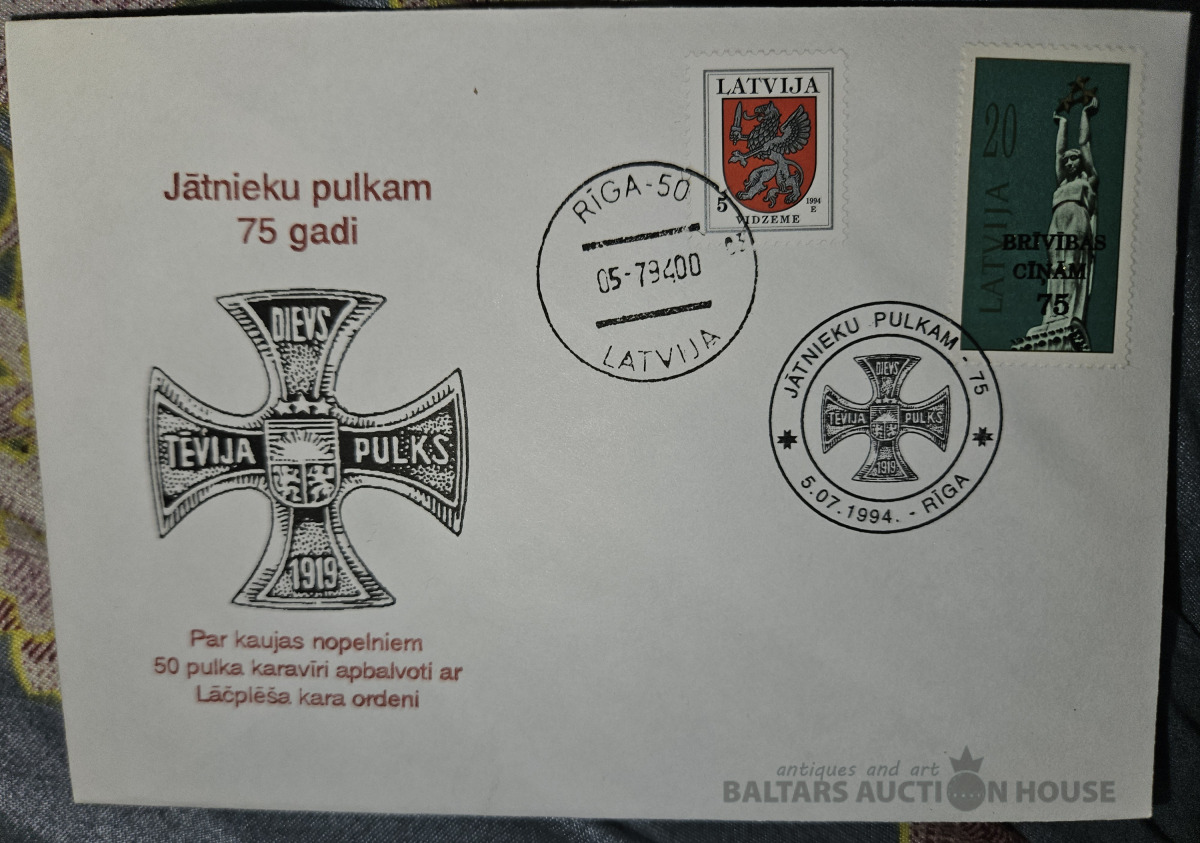 Aploksne. "Jātnieku pulkam 75.gadi. Par kaujas nopelniem 50 pulka karavīri apbalvoto sr Lāčplēša ordeni.