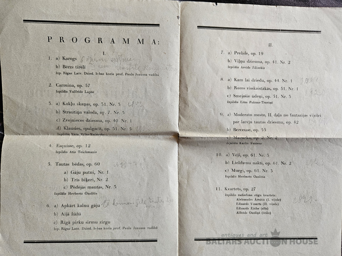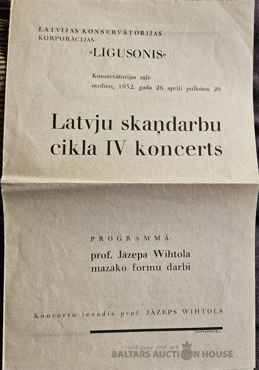 Latvijas konservatorijas korporācijas " Līgusonis " Programma prof.Jāzepa Wihtola mazo formu darbi.
