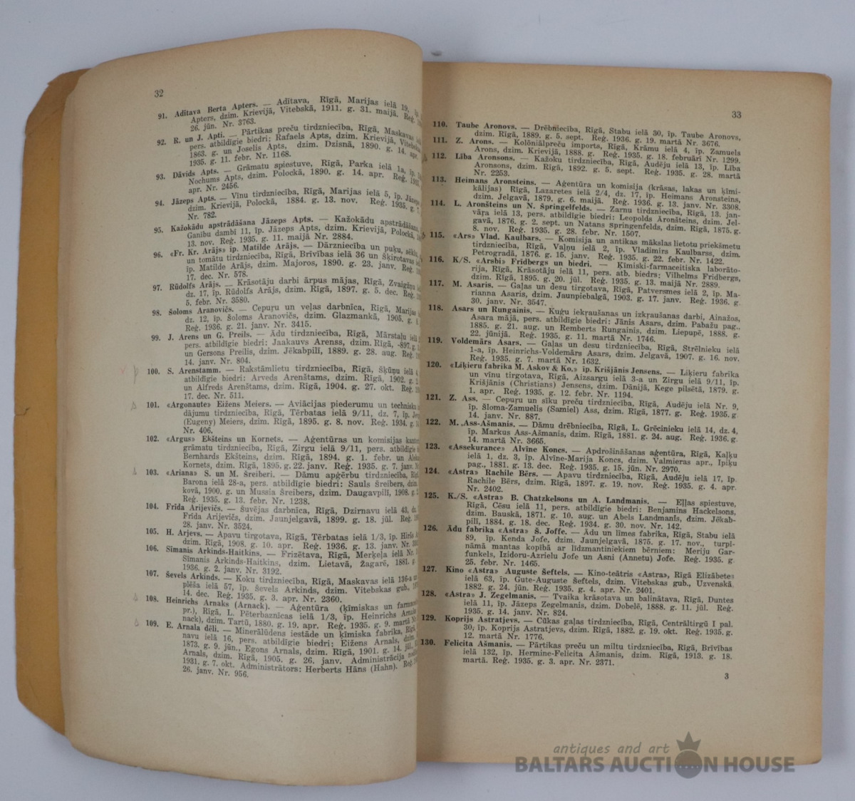 LATVIJAS TIRGOTAJU SARAKSTS, 1936. g.