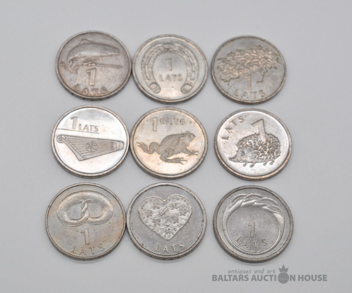 Dažādas latu monētas. 9 gb.