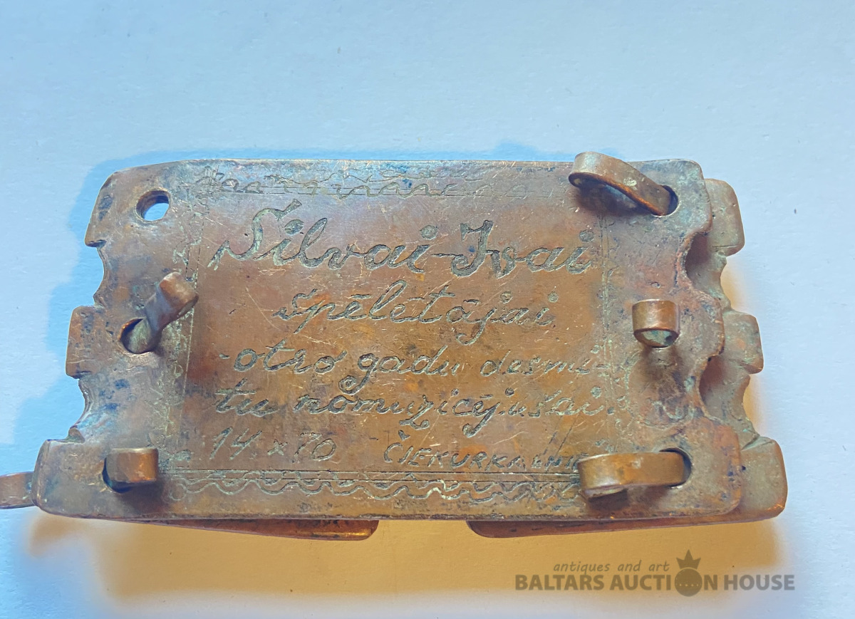 Nacionālā tērpa kora dziedātāja jostas sprādze,roku darbs,varš.