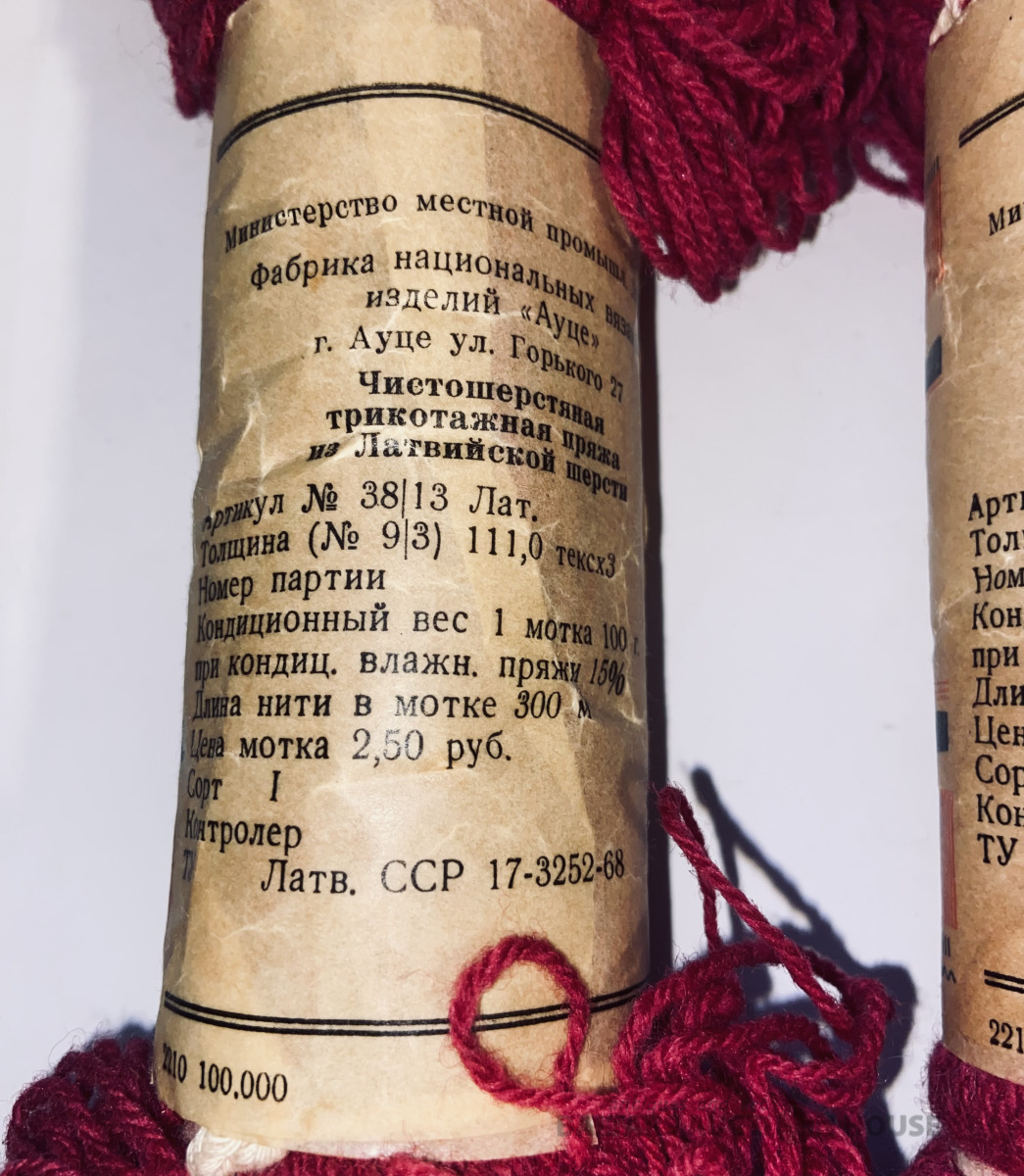 Tīras vilnas adīšanas dzija no Latvijas vilnas,1970.gadi. Fabrika “Rīgas tekstils”