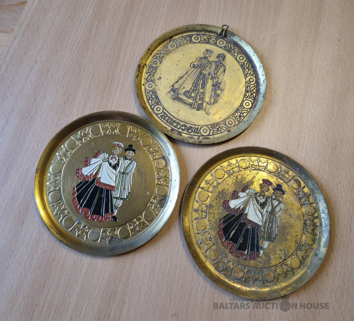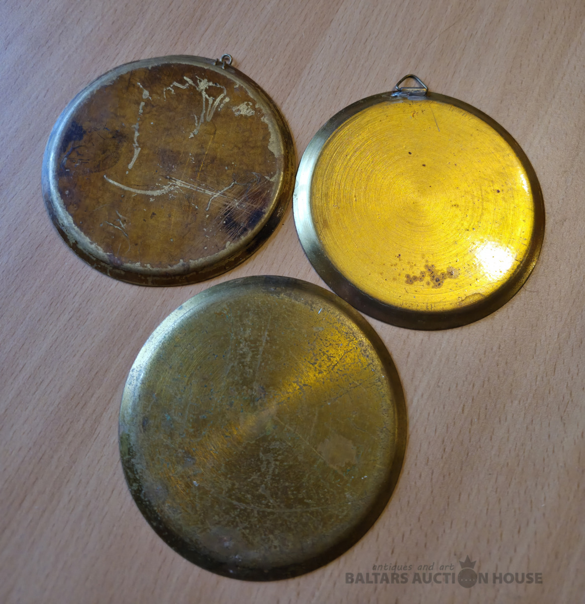 Nelieli padomju laika misiņa dekoratīvie sienas šķīvīši . D - 10 cm , bēdīgā stāvoklī