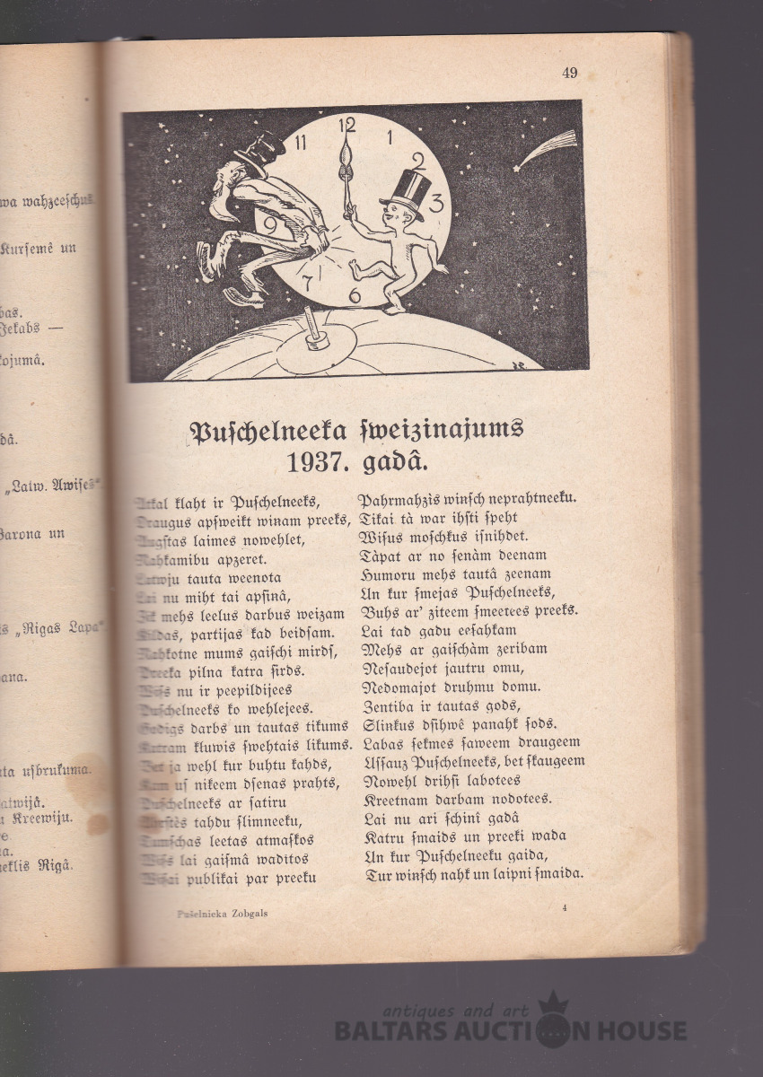 Pušelnieka Zobgala kalendārs 1937. g. / Daudz satīriskās ilustrācijas, ARĪ KRĀSAINĀS (Zeberiņš, Rirdāns, Egils Hermanovskis, Drekslers, Nemme u.c.) – skatīt bildēs