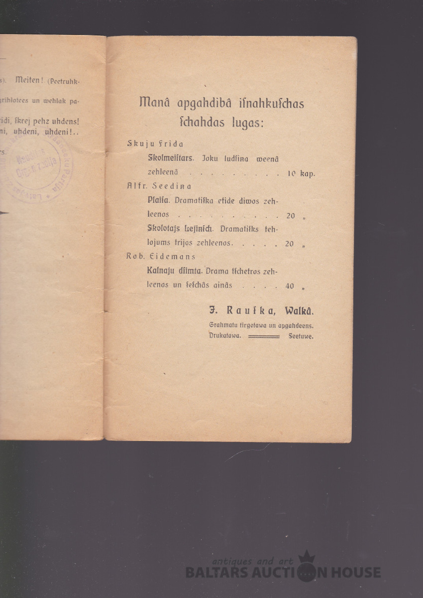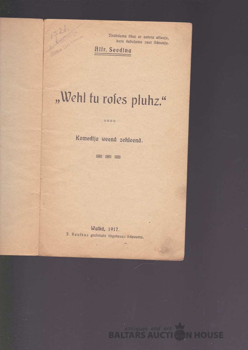 Alfrēds Ziediņš VAI TU ROZES PLŪC? 1917. g. Rauskas izdevums Valkā. Kara gadi. AR ZĪMOGU – Latvijas Sociālsemokrātiskā Strādnieku Partija (Naudītes pagasta organizācija)