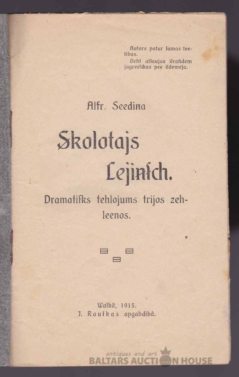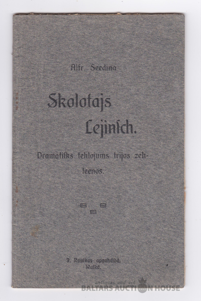 Alfrēds Ziediņš SKOLOTĀJS LEJIŅŠ, 1913. g. Rauskas izdevums Valkā (Dzīvojis PSRS 1937. gadā Lielā terora laikā apcietināts un 1938. gadā nošauts)
