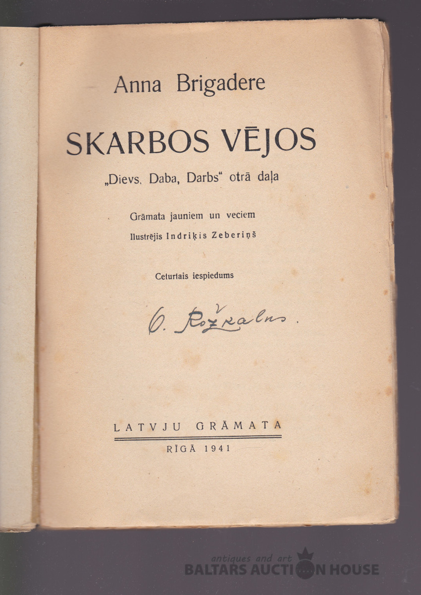 Anna Brigadere SKARBOS VĒJOS, 1941. g. Ar daudzām ilustrācijām ilustrējis Indriķis Zeberiņš. Labā stāvoklī