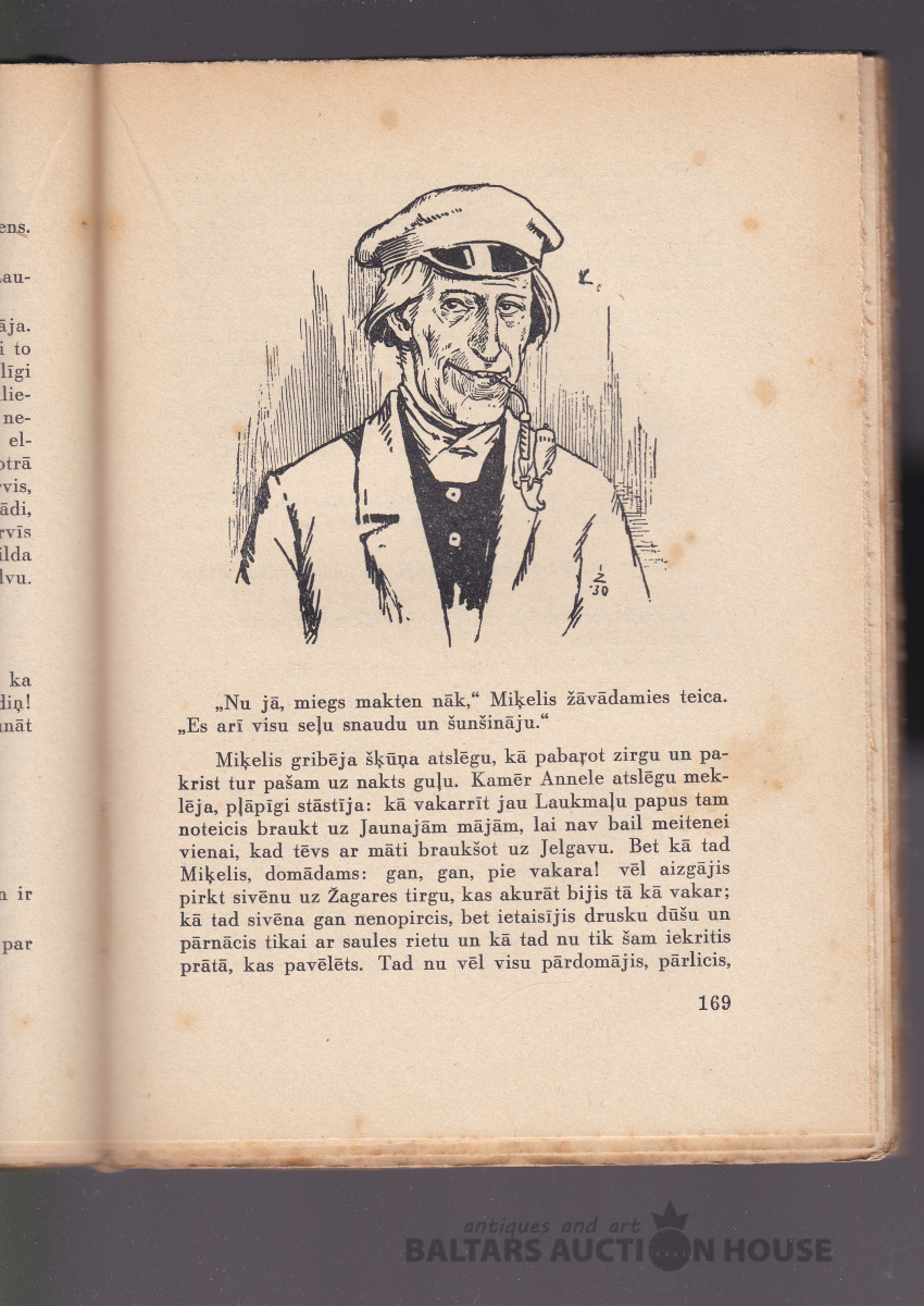 Blaumaņa un Poruka daiļdarbu izlase, 1948. g. SAUKSME. Leonīda Ozoliņa vāka zīmējums un katram stāstam individuāli zīmēta vinjete (kopā 7 ilustrācijas)