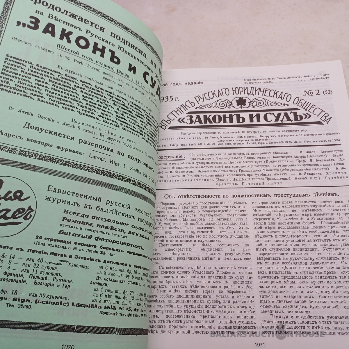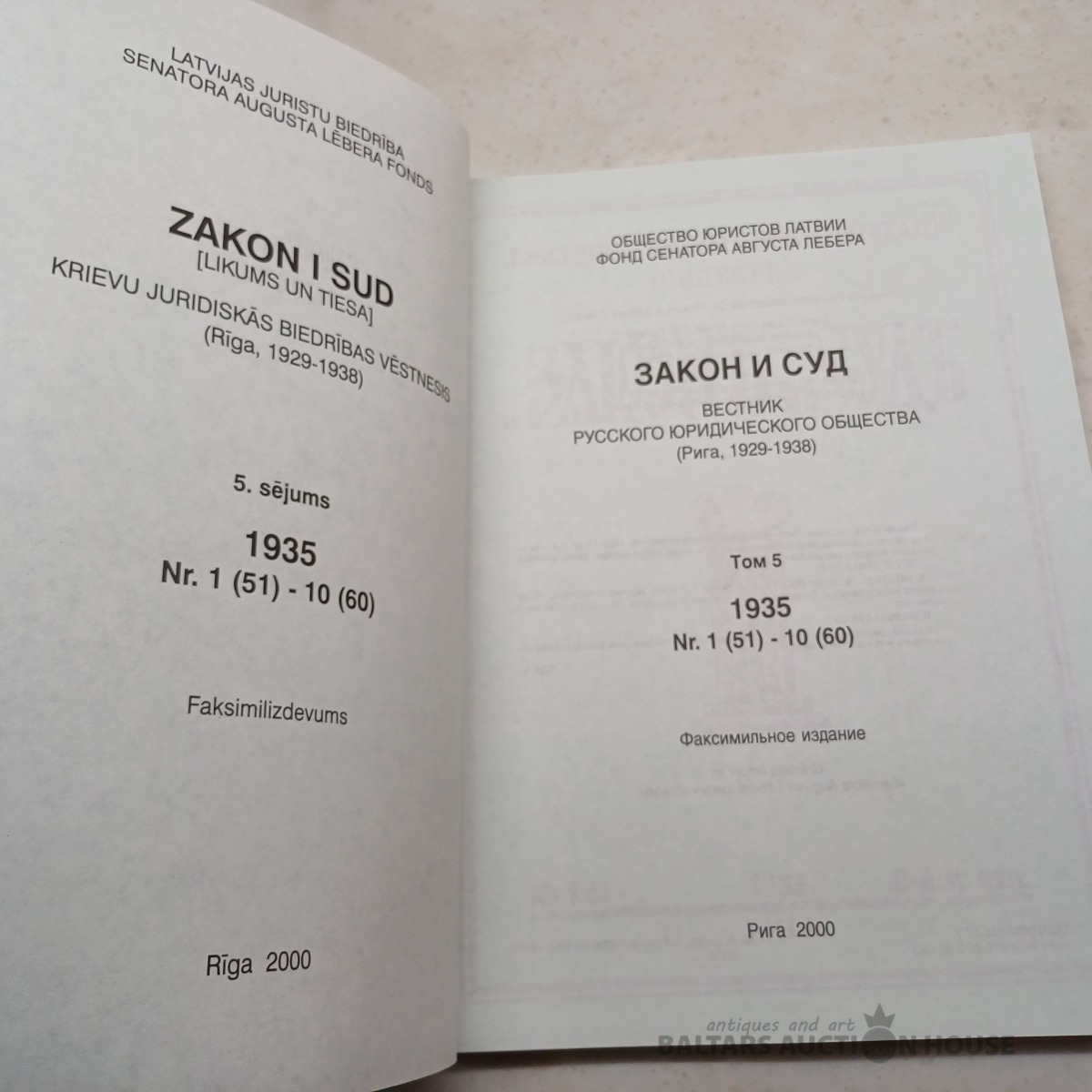 ЗАКОН И СУД, 1935. г., РИГА (ФАКСИМИЛЬНОЕ ИЗДАНИЕ) / Likums un tiesa, 1935. g. Rīga (faksimils) / PILNS GADS – Krievu juridiskās biedrības vēstnesis
