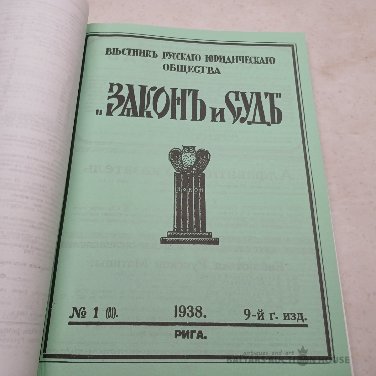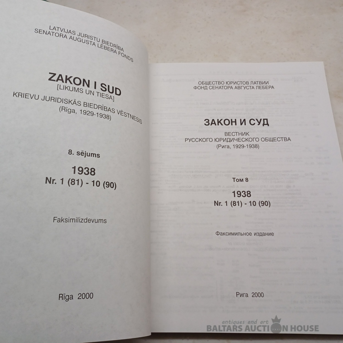 ЗАКОН И СУД, 1938. г., РИГА (ФАКСИМИЛЬНОЕ ИЗДАНИЕ) / Likums un tiesa, 1938. g. Rīga (faksimils) / PILNS GADS – Krievu juridiskās biedrības vēstnesis