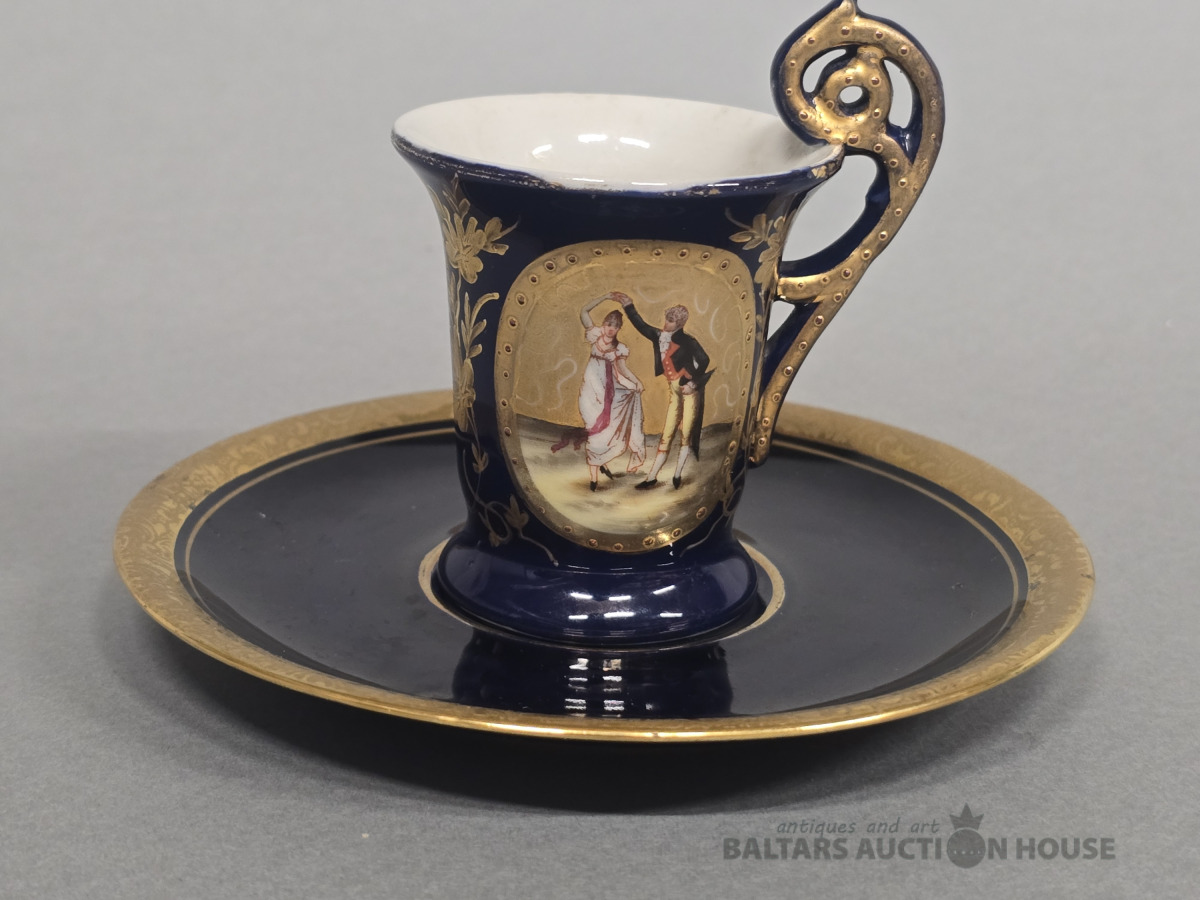 Izsmalcināts porcelāna kafijas komplekts. Vācija,Bavārija. Roku gleznojums,zeltījums.