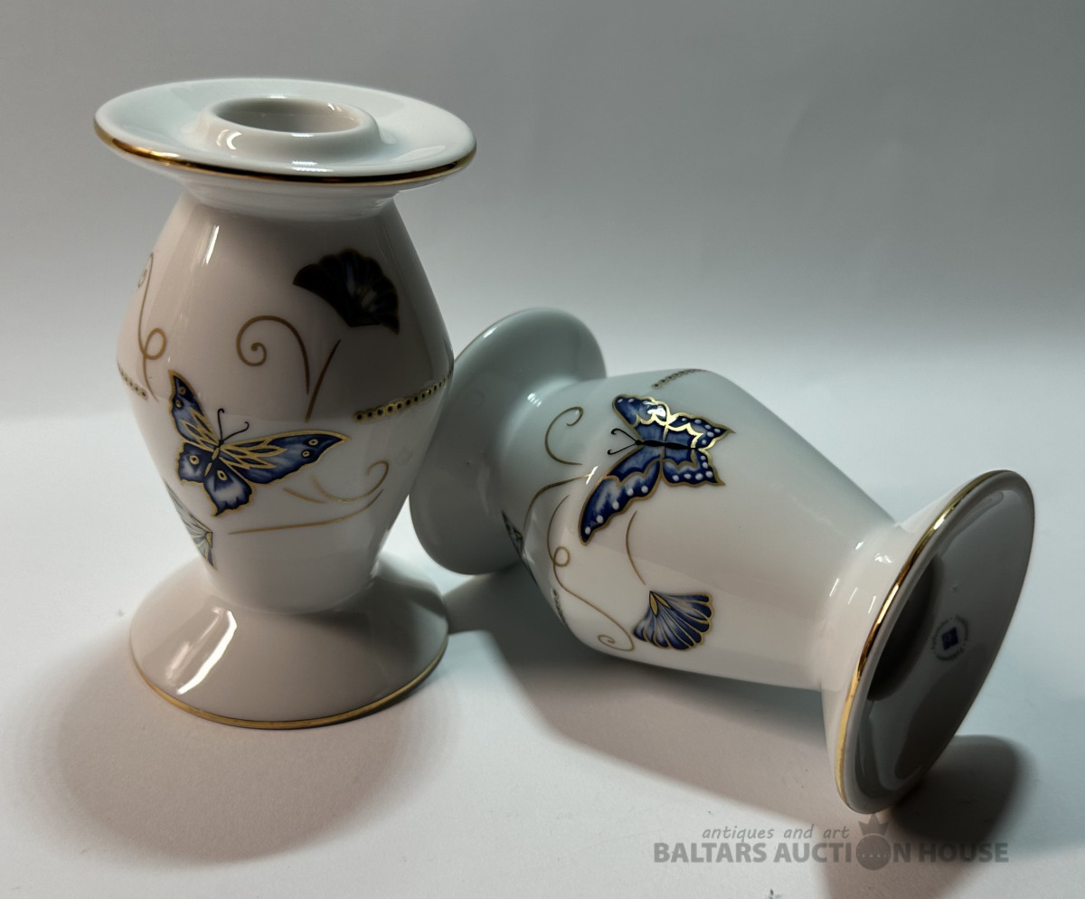 Porcelāna svečturi, 2 gb, roku darbs apgleznojums, zeltījums, Zviedrijas zīmols Fyrklovern, augstums 10 cm, ideāla kondīcija, kā jauni.