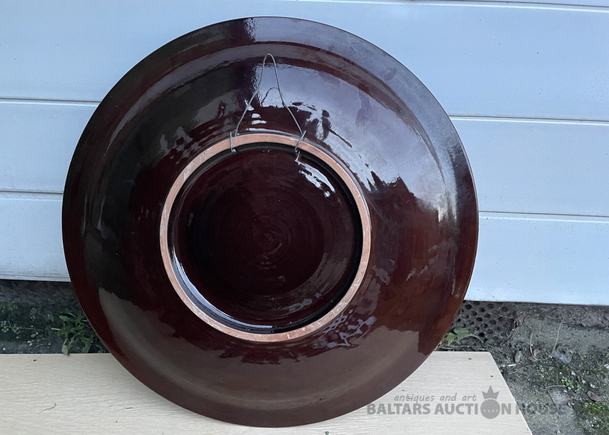 Liels sienas šķīvis ar ausekli, d- 39,1 cm. Keramika. Bez traumām