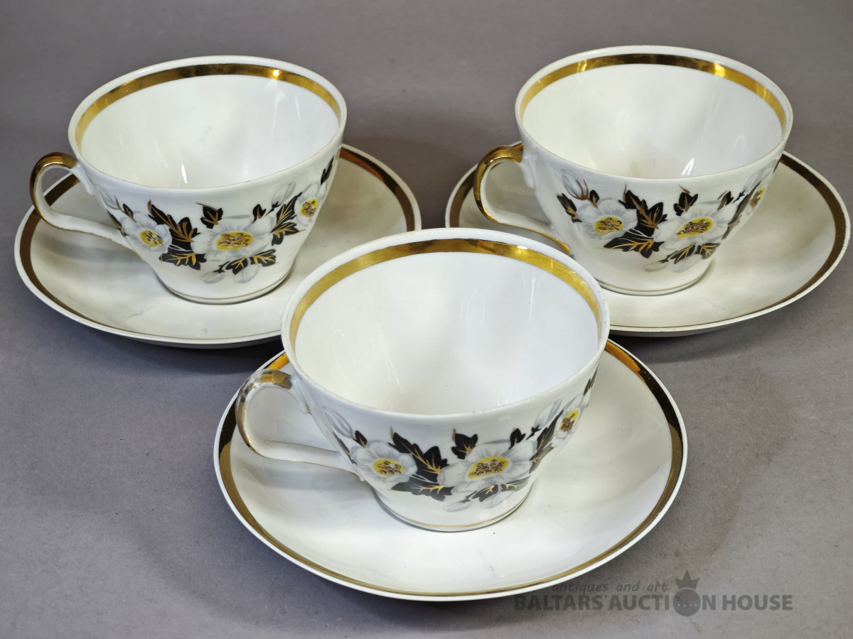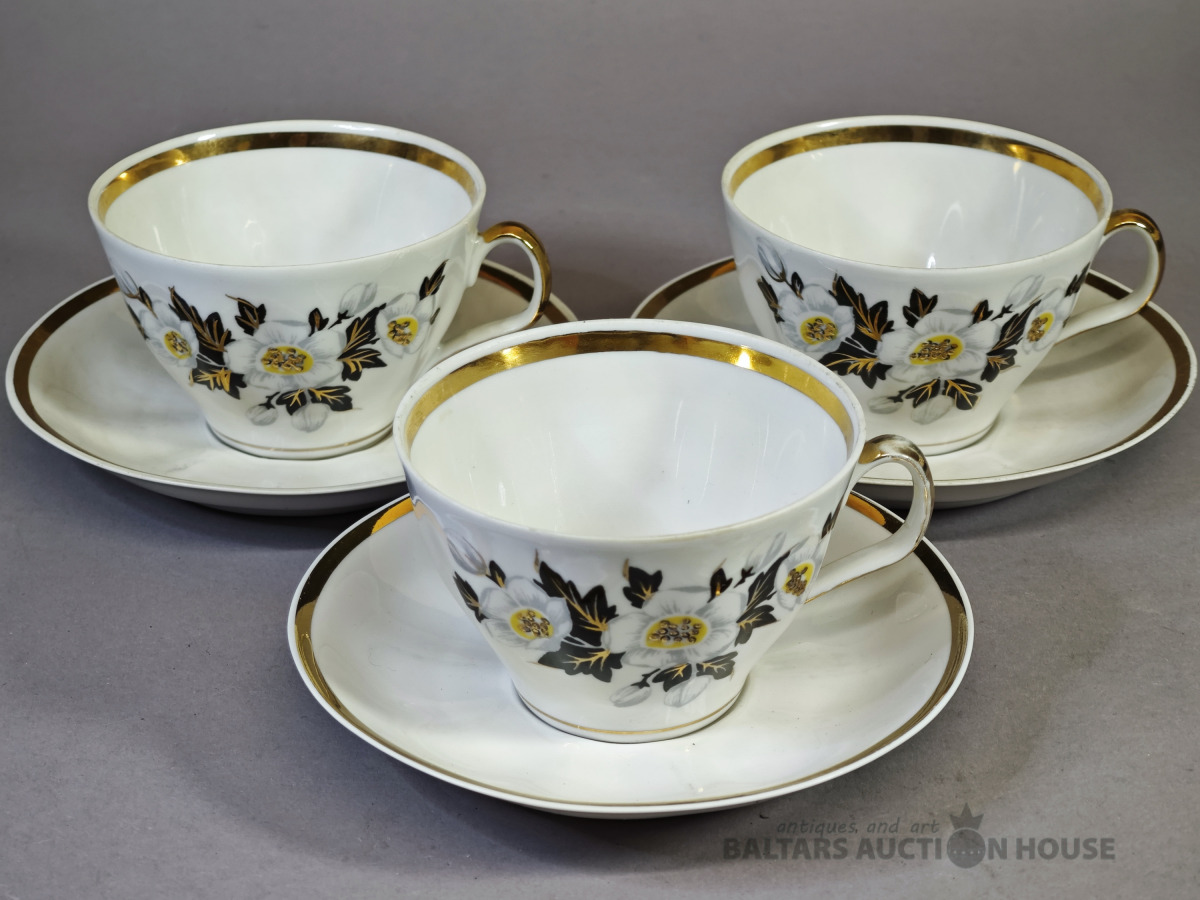 3 tases un apakštasītes no tējas servīze SIGULDA, plānsienu porcelāns, Rīga RPR, bez plaisam un nošķēlumiem
