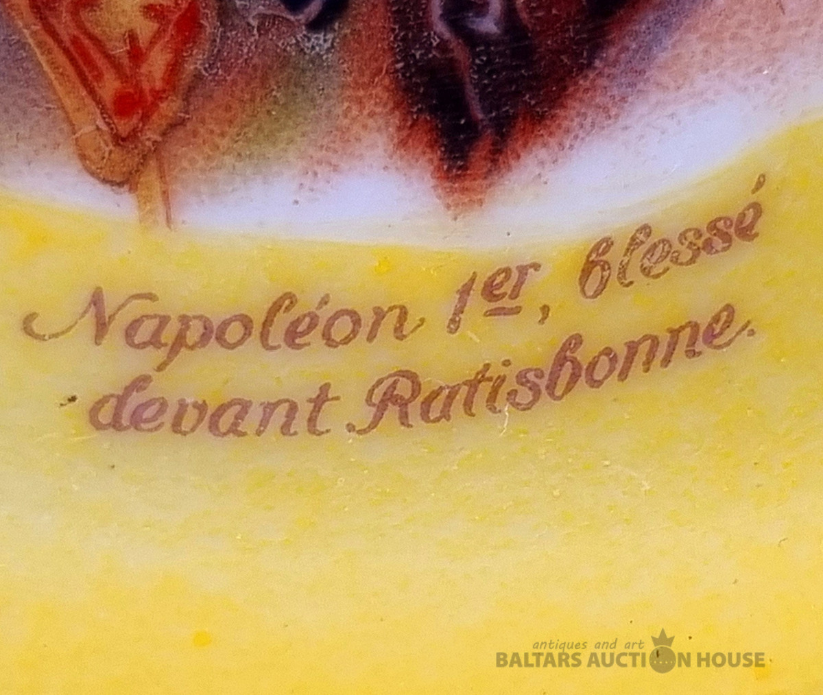 Deserta šķīvis, diametrs 15,3 cm. Korsikas piemiņa. LIMOŽA, FRANCIJA. Napoleons I tika sagūstīts netālu no Rēgensburgas. DŽAKO – KORSIKAS GALVASPILSĒTA.