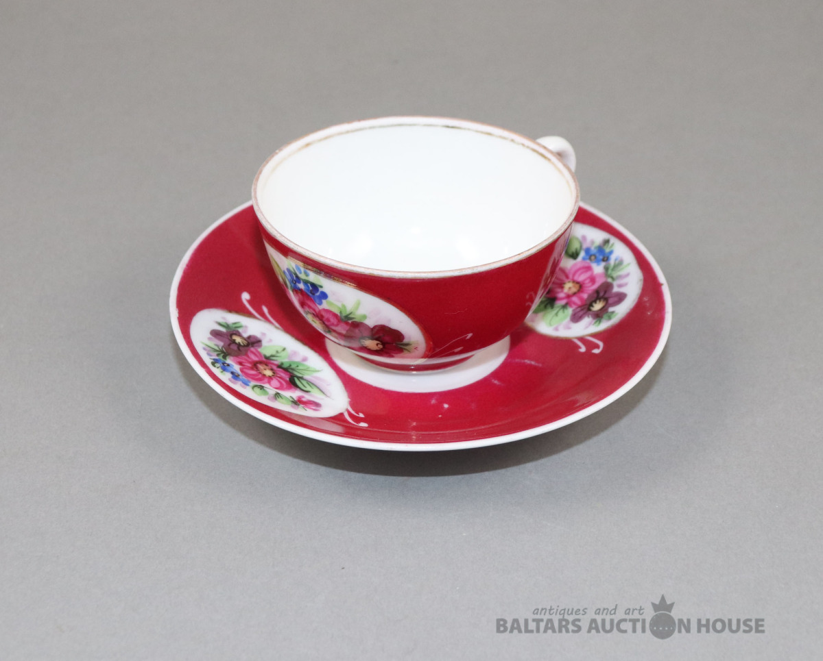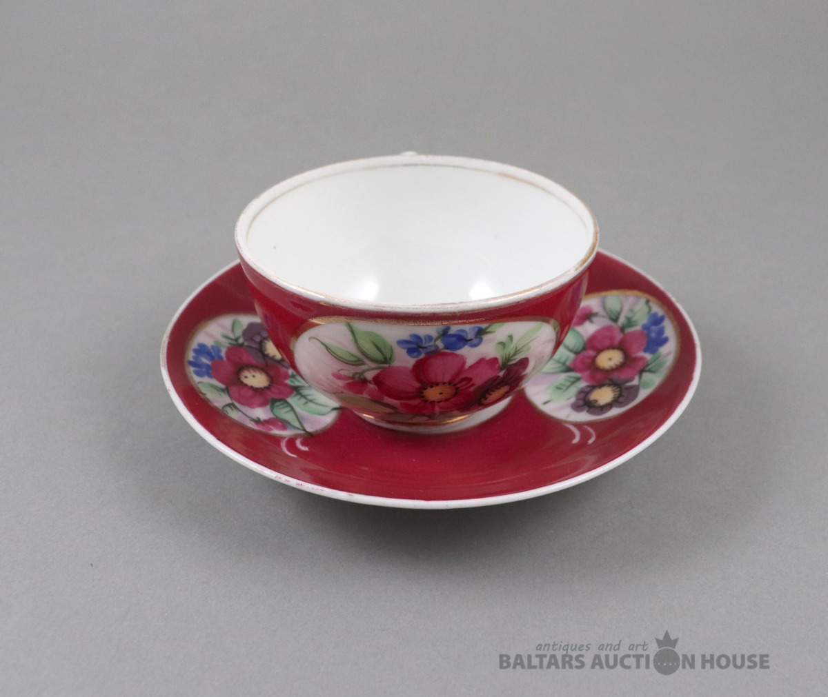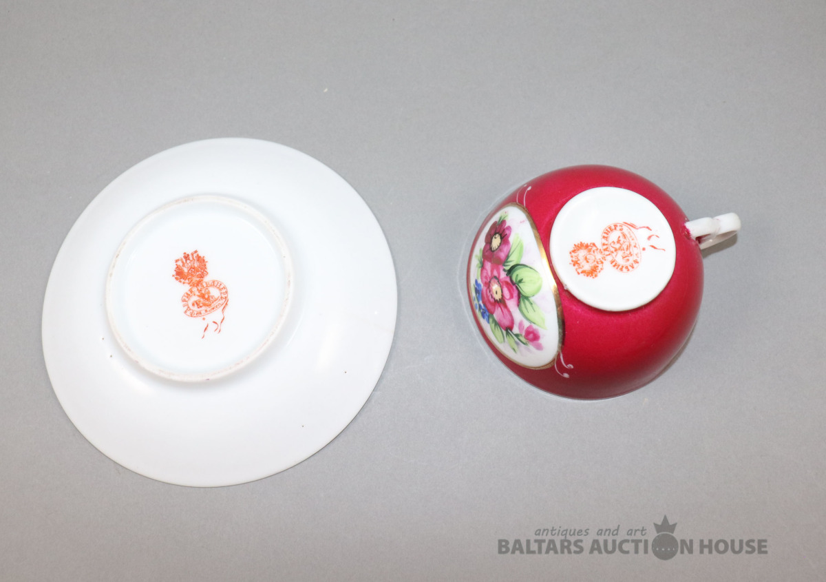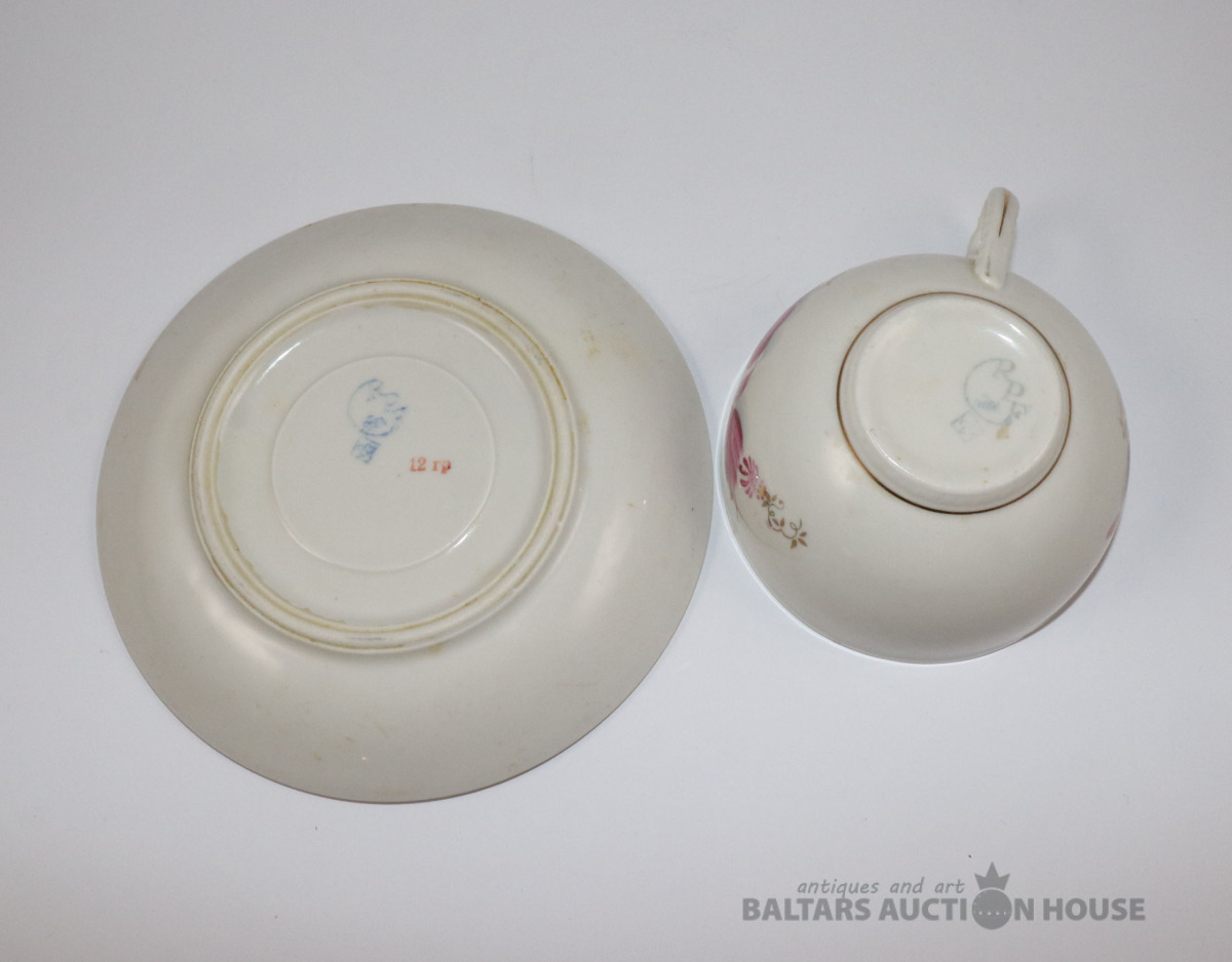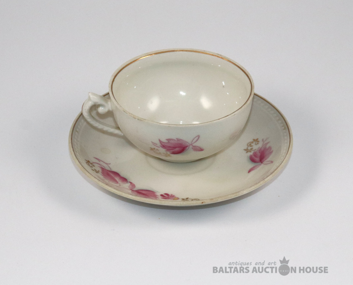 PORCELĀNA TASE AR APAKŠTASI. Rīga.