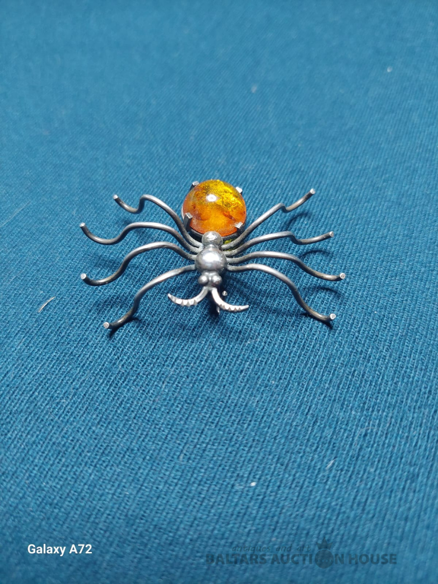 Sudraba piespraude zirneklis . 925 prove ., Izm 4,5x3cm.
