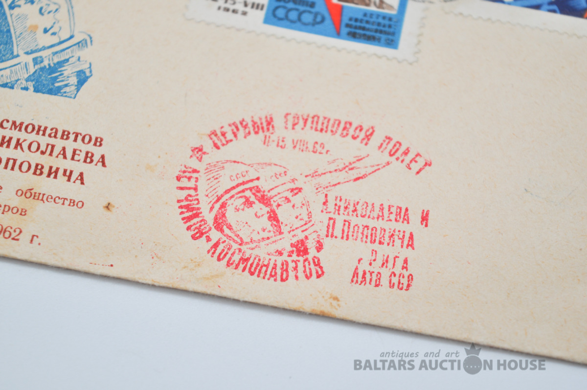 Pastkartes/Aploksne. Nikolajeva/Popoviča lidojums. Rīgas zīmogi.